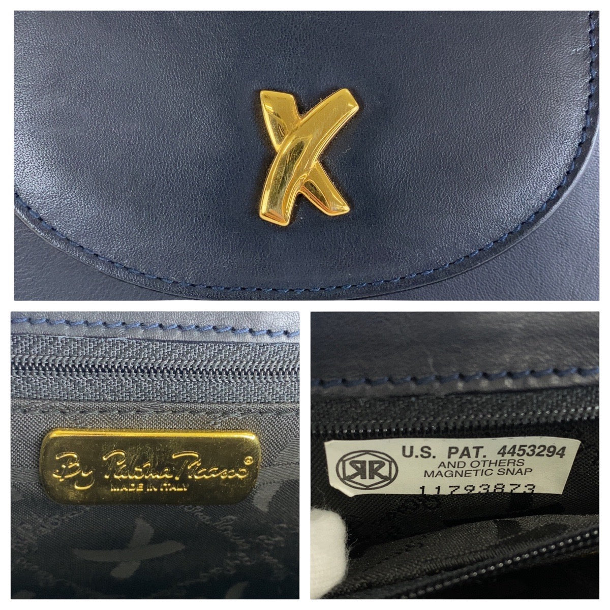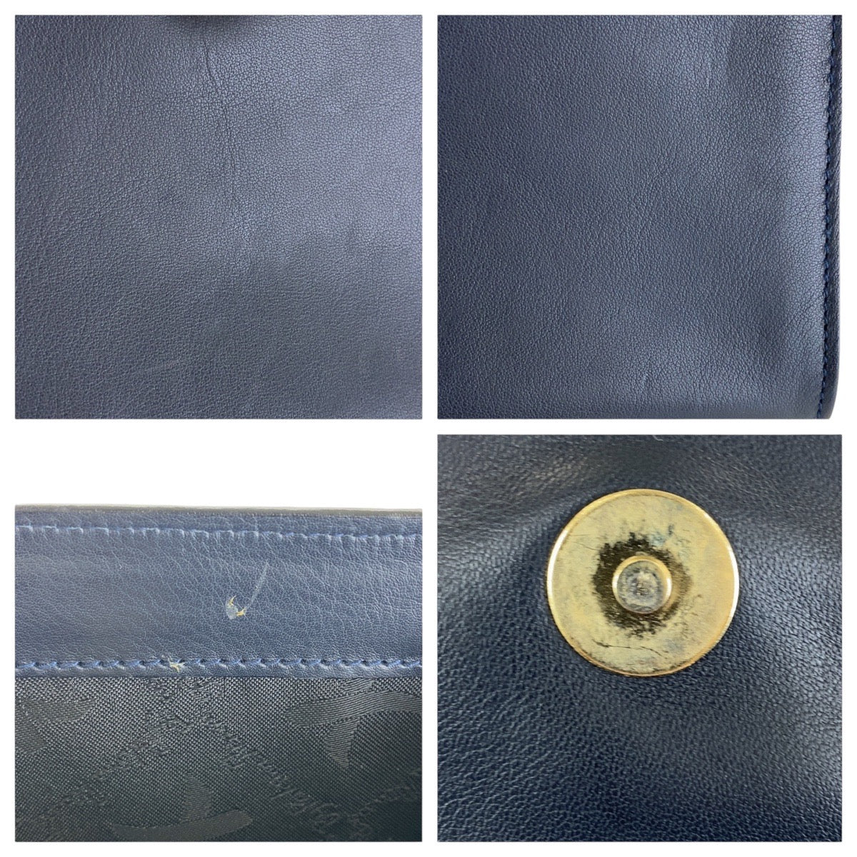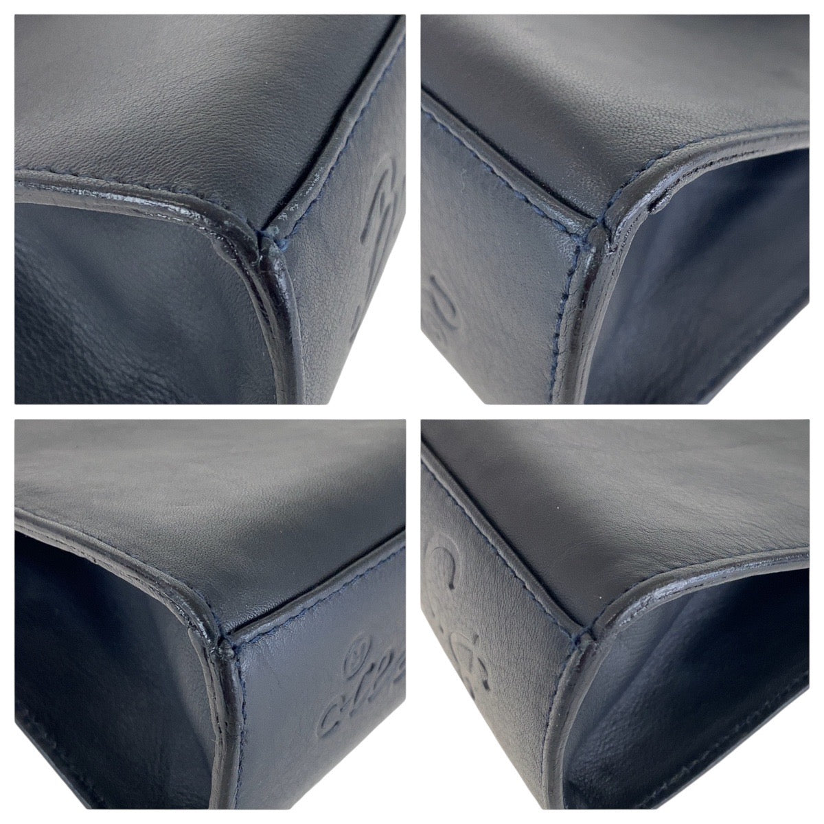 13097 Paloma Picasso パロマピカソ ヴィンテージ ネイビー ゴールド金具 レザー 斜め掛け チェーンショルダーバッグ レディース AB5