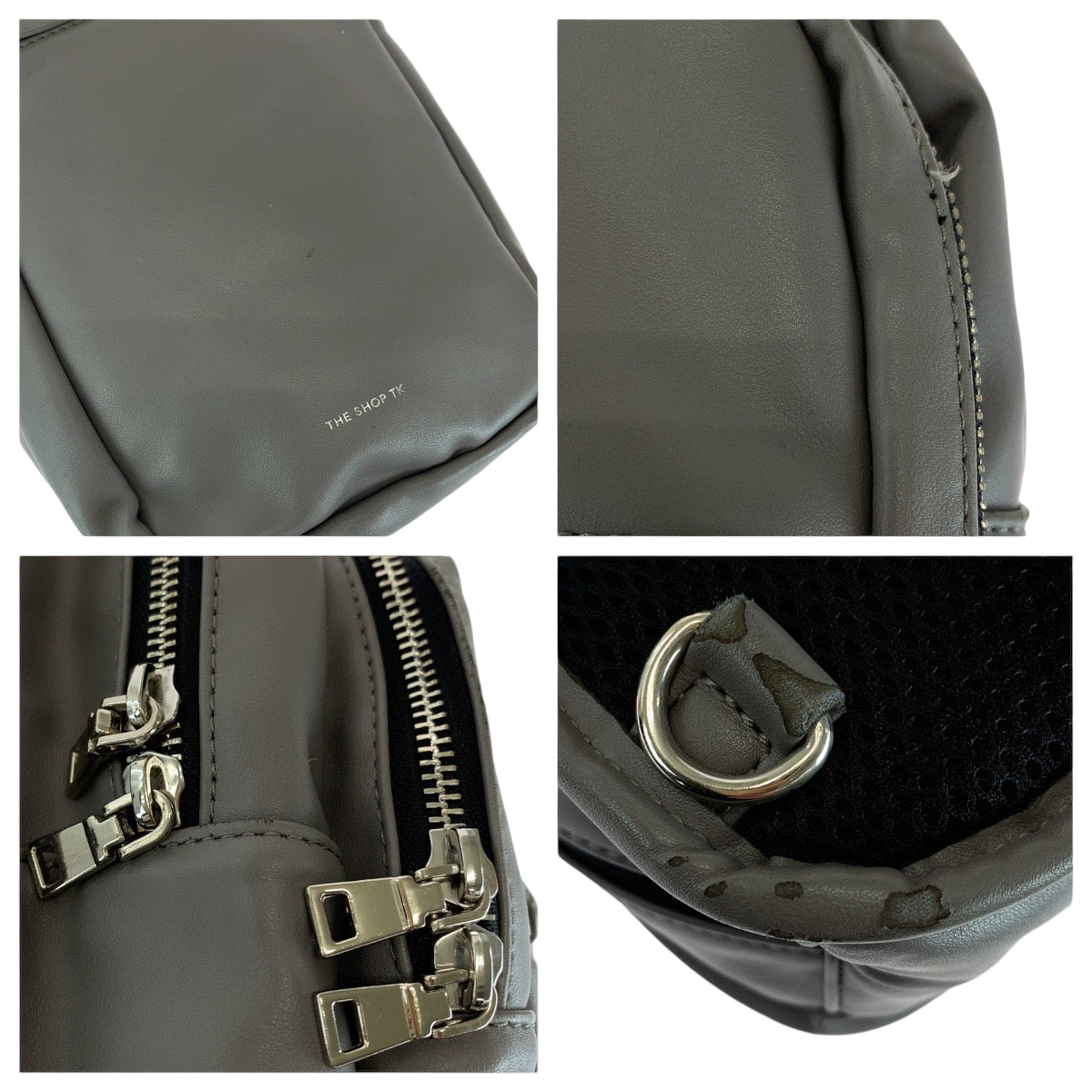 13523 TAKEO KIKUCHI タケオキクチ グレー シルバー金具 レザー ボディバッグ ボムバッグ メンズ AB5