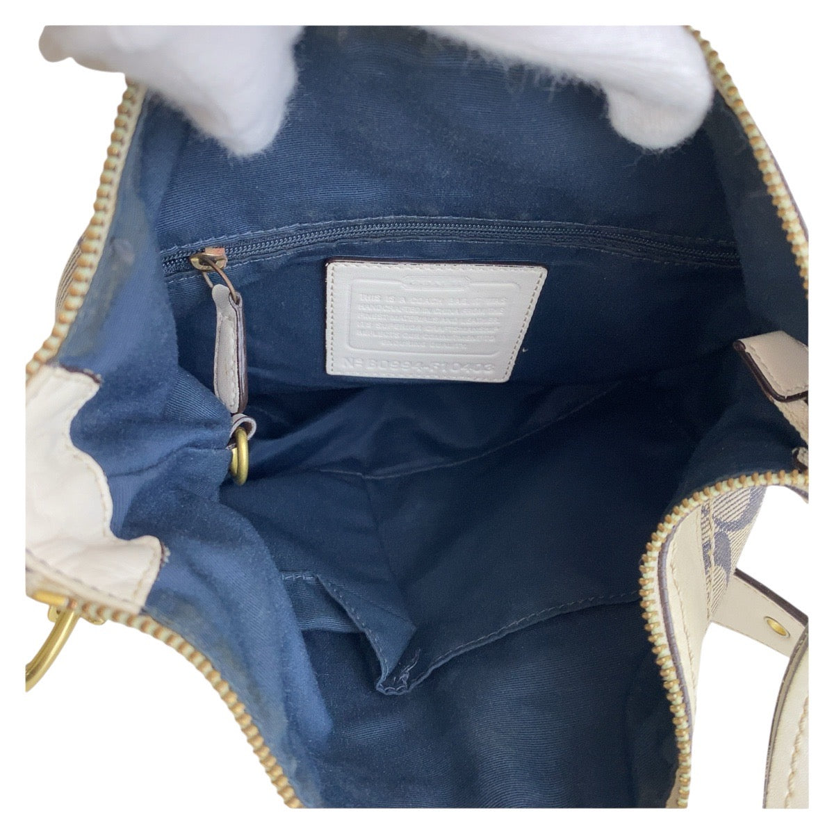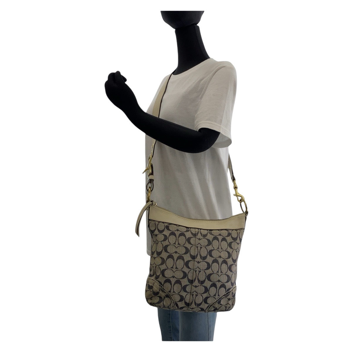 13642 COACH コーチ シグネチャー グレー ホワイト 白 ゴールド金具 キャンバス / レザー 斜め掛け ショルダーバッグ メッセンジャーバッグ レディース B5