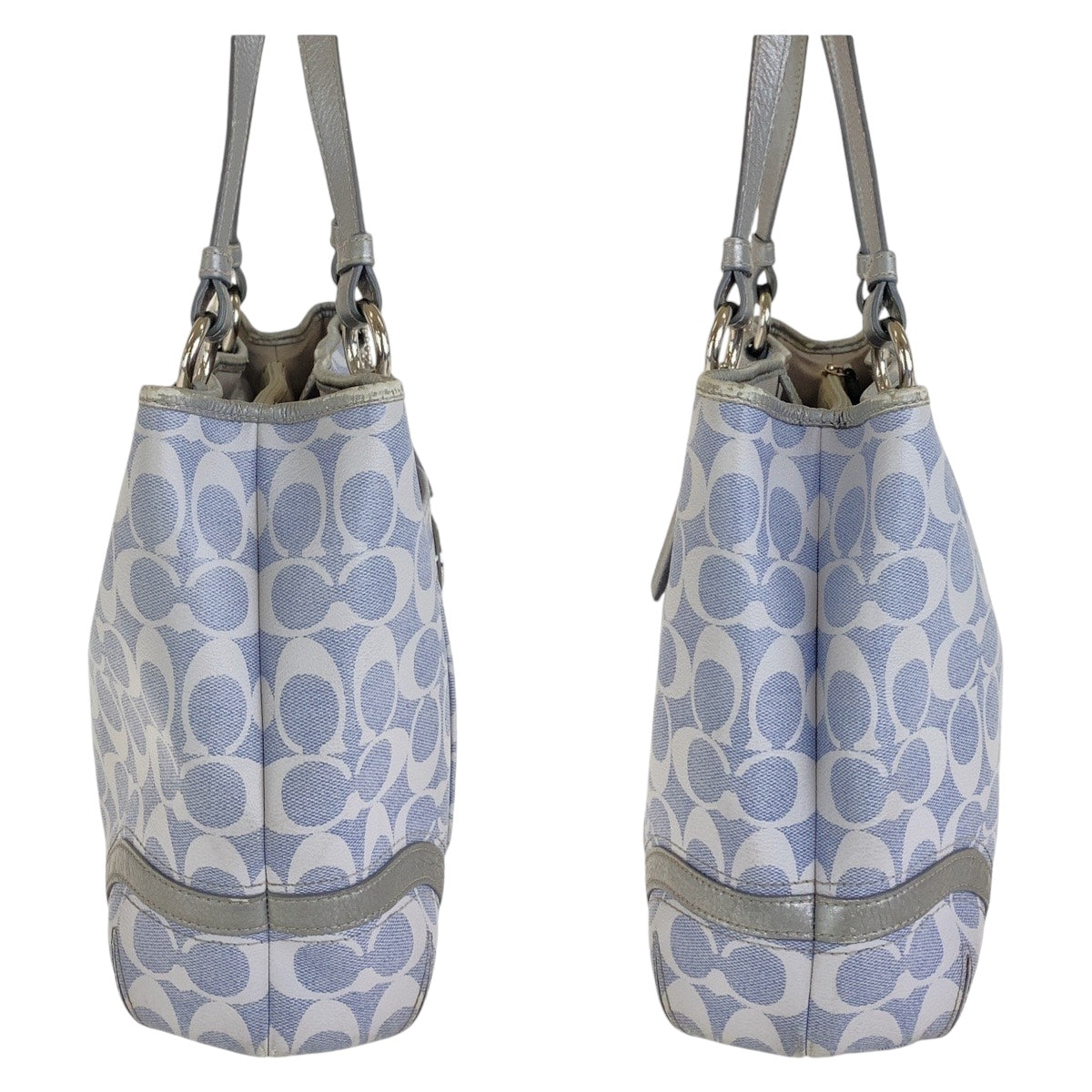 13706 COACH コーチ シグネチャー 水色 シルバー シルバー金具 PVC トートバッグ ショルダーバッグ レディース AB5