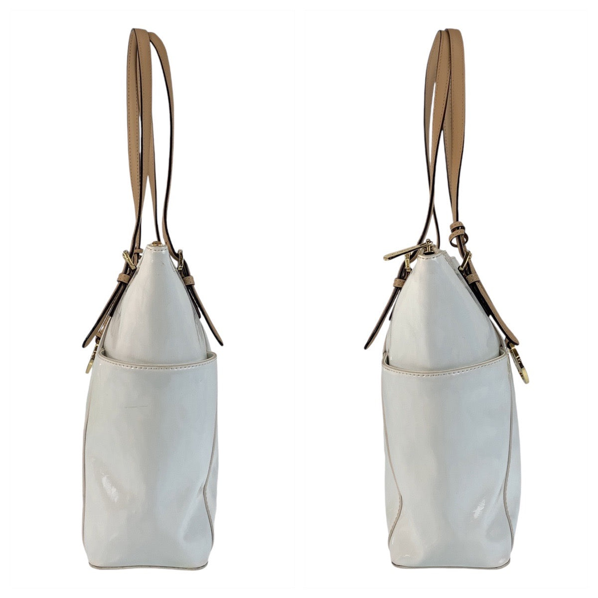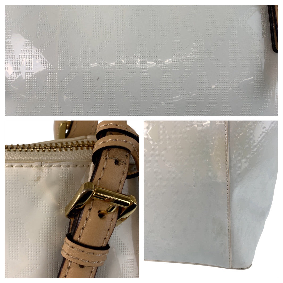 13717 Michael Kors マイケルコース ホワイト ゴールド金具 エナメル トートバッグ ショルダーバッグ レディース AB5