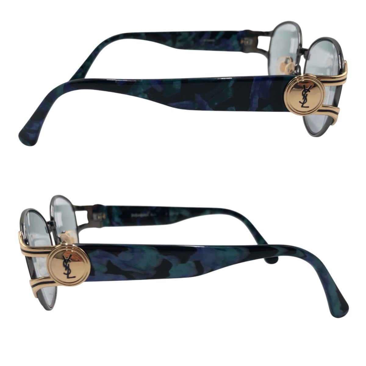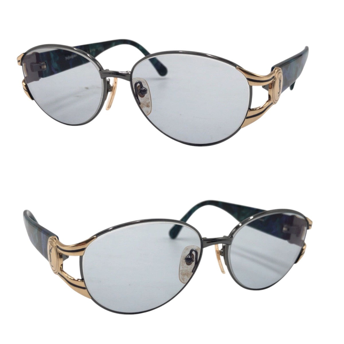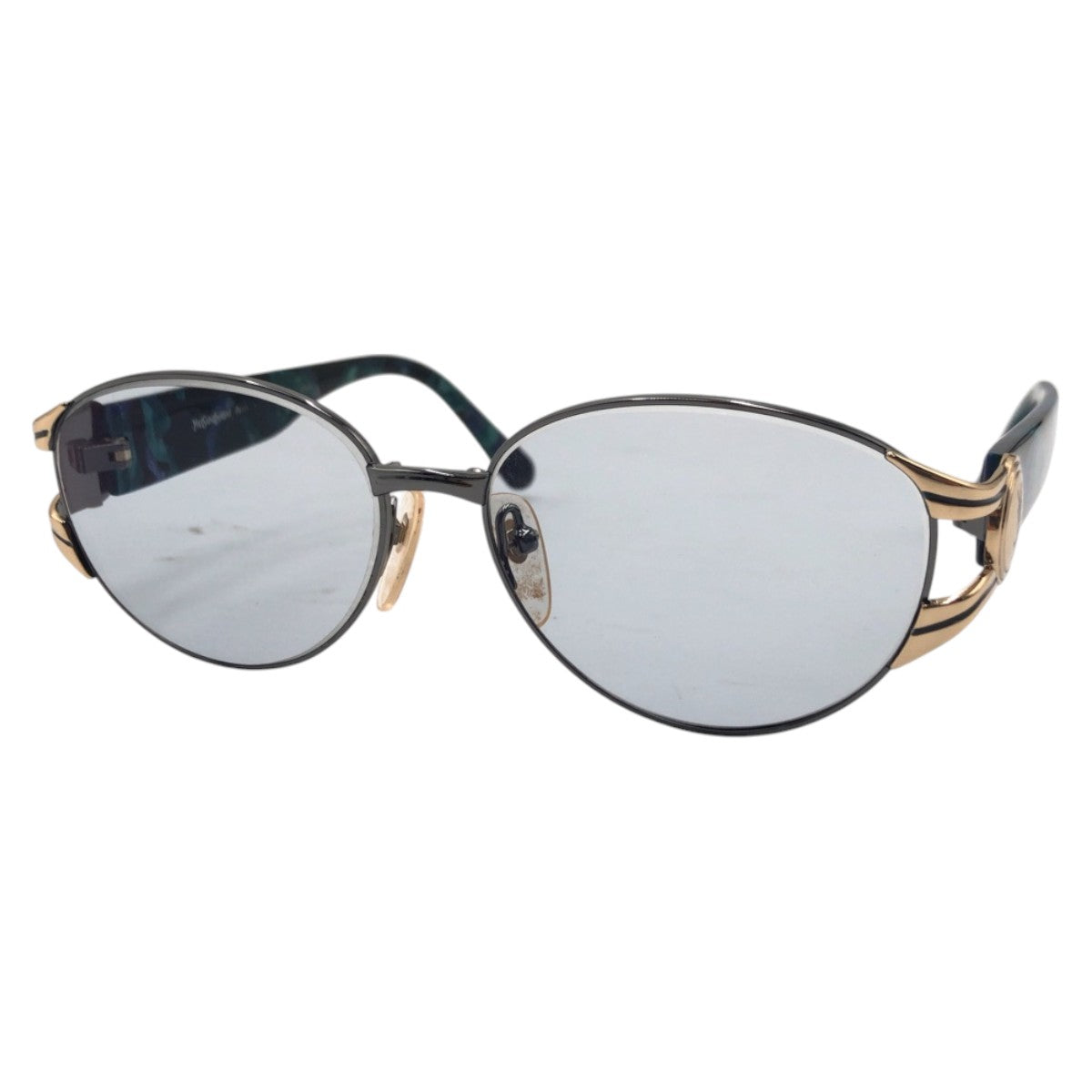 YVES SAINT LAURENT イヴ サンローラン ヴィンテージ YSL グリーン シルバー メタル 6BJ サングラス ウェリントン レディース