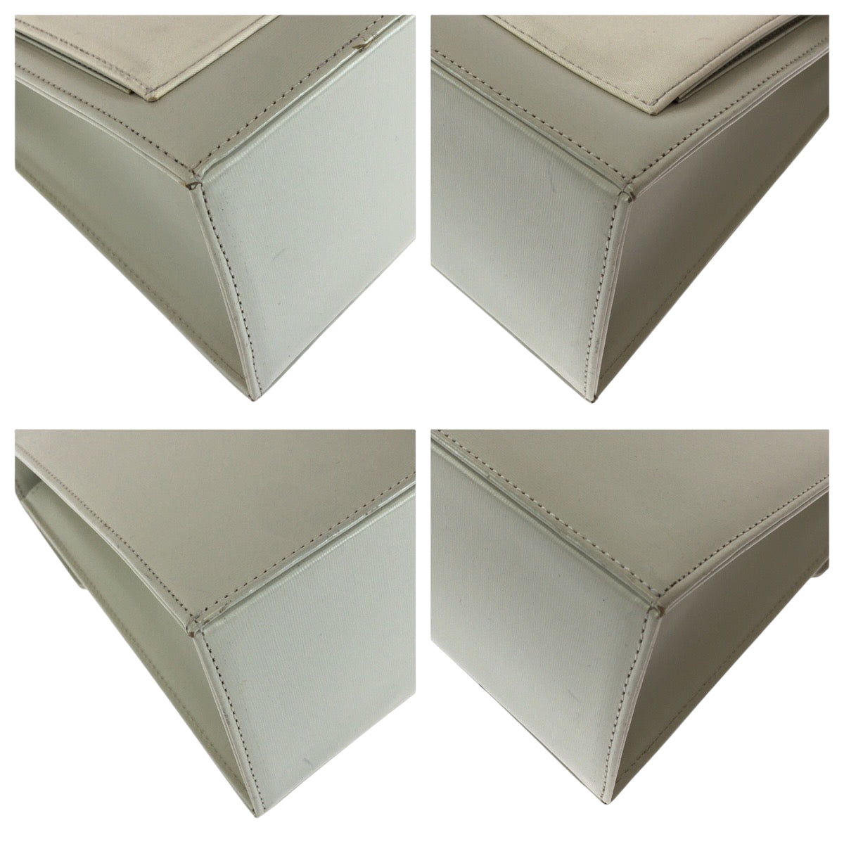 15129 YVES SAINT LAURENT イヴ サンローラン ヴィンテージ YSL ホワイト アイボリー ゴールド金具 レザー ハンドバッグ レディース A32