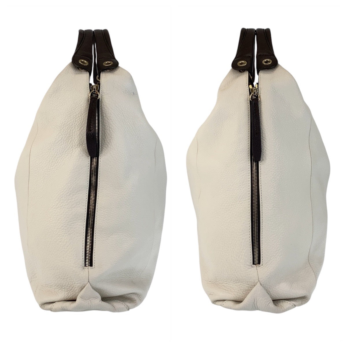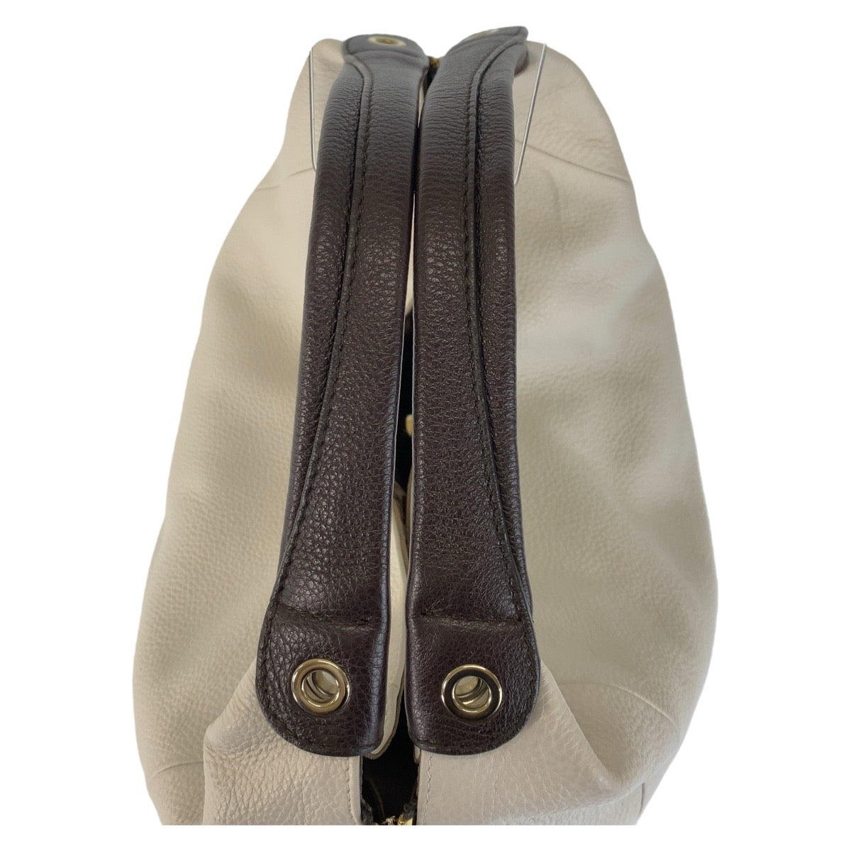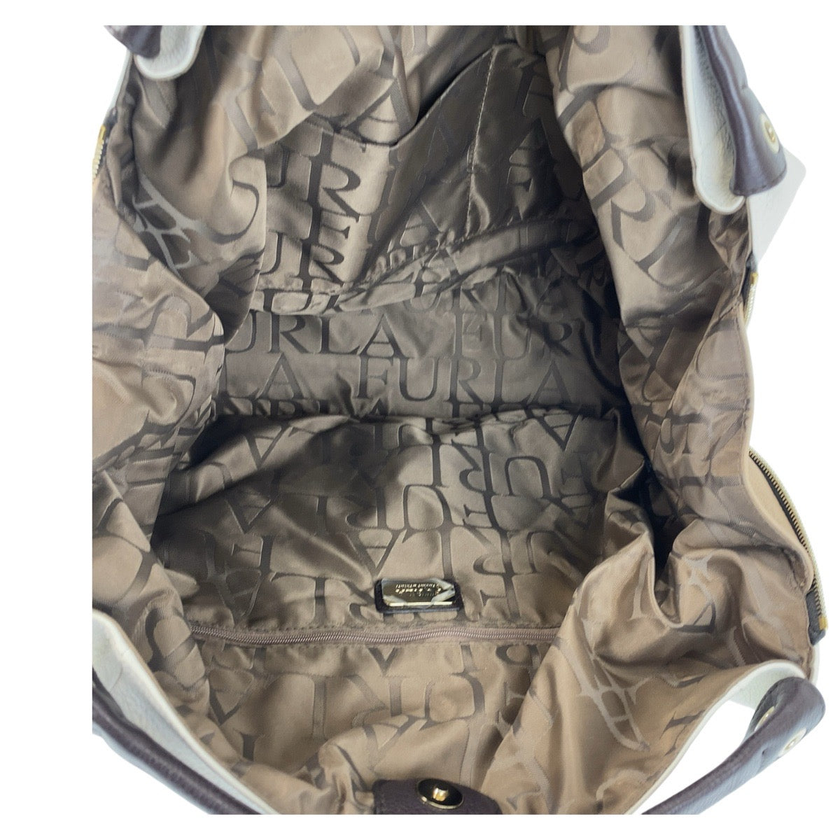 15403 Furla フルラ リズ ホワイト ブラウン ゴールド金具 レザー ショルダーバッグ レディース