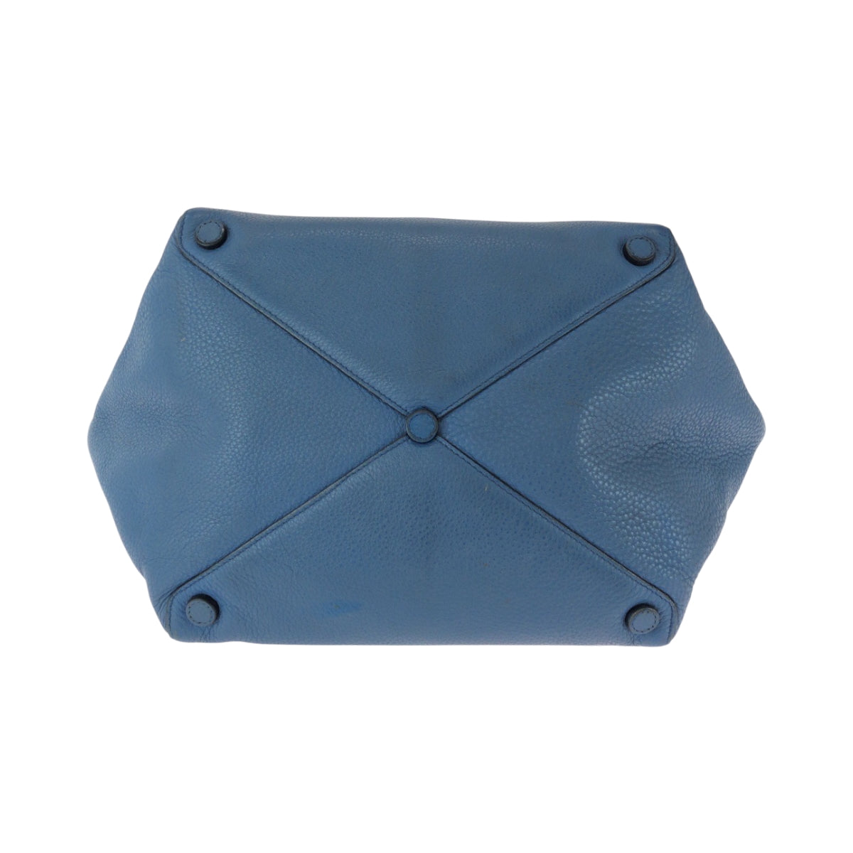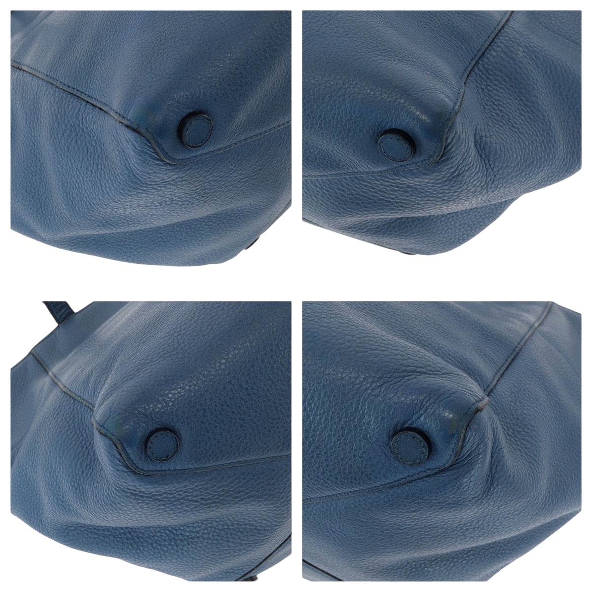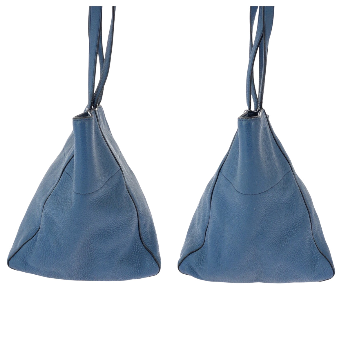 15980 PRADA プラダ ヴィッテロダイノ 三角ロゴプレート ブルー ゴールド金具 レザー トートバッグ ハンドバッグ レディース ABP41