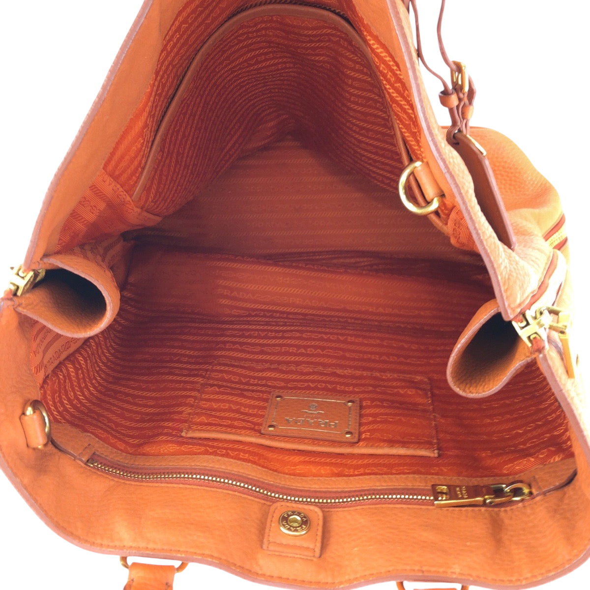 16429 PRADA プラダ ヴィッテロダイノ ロゴ オレンジ ゴールド金具 レザー BN1713 ショルダーバッグ トートバッグ 2way レディース AB63