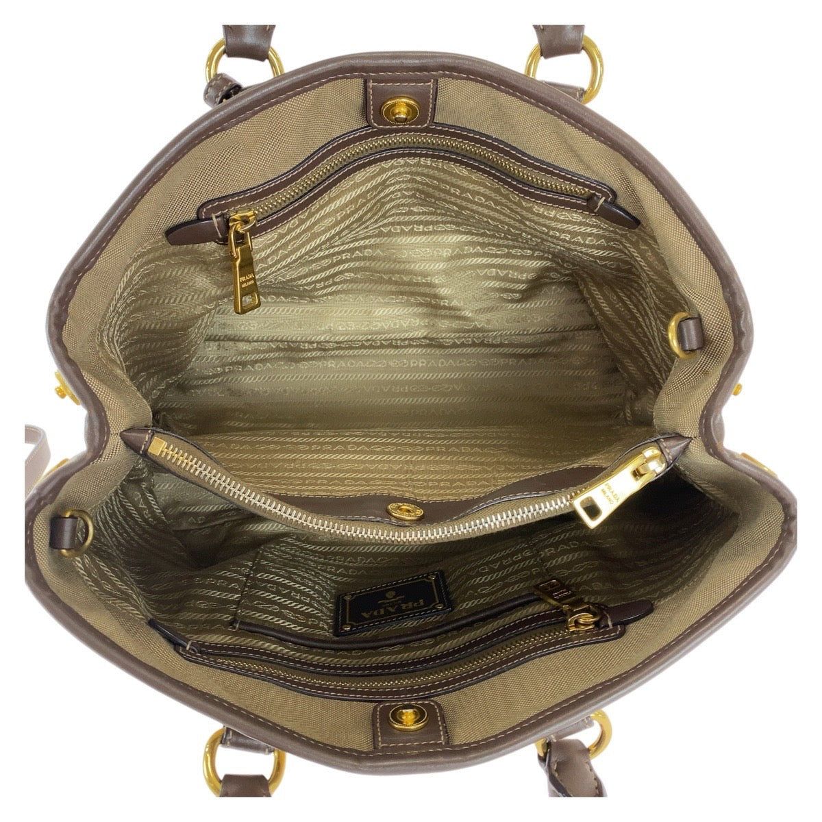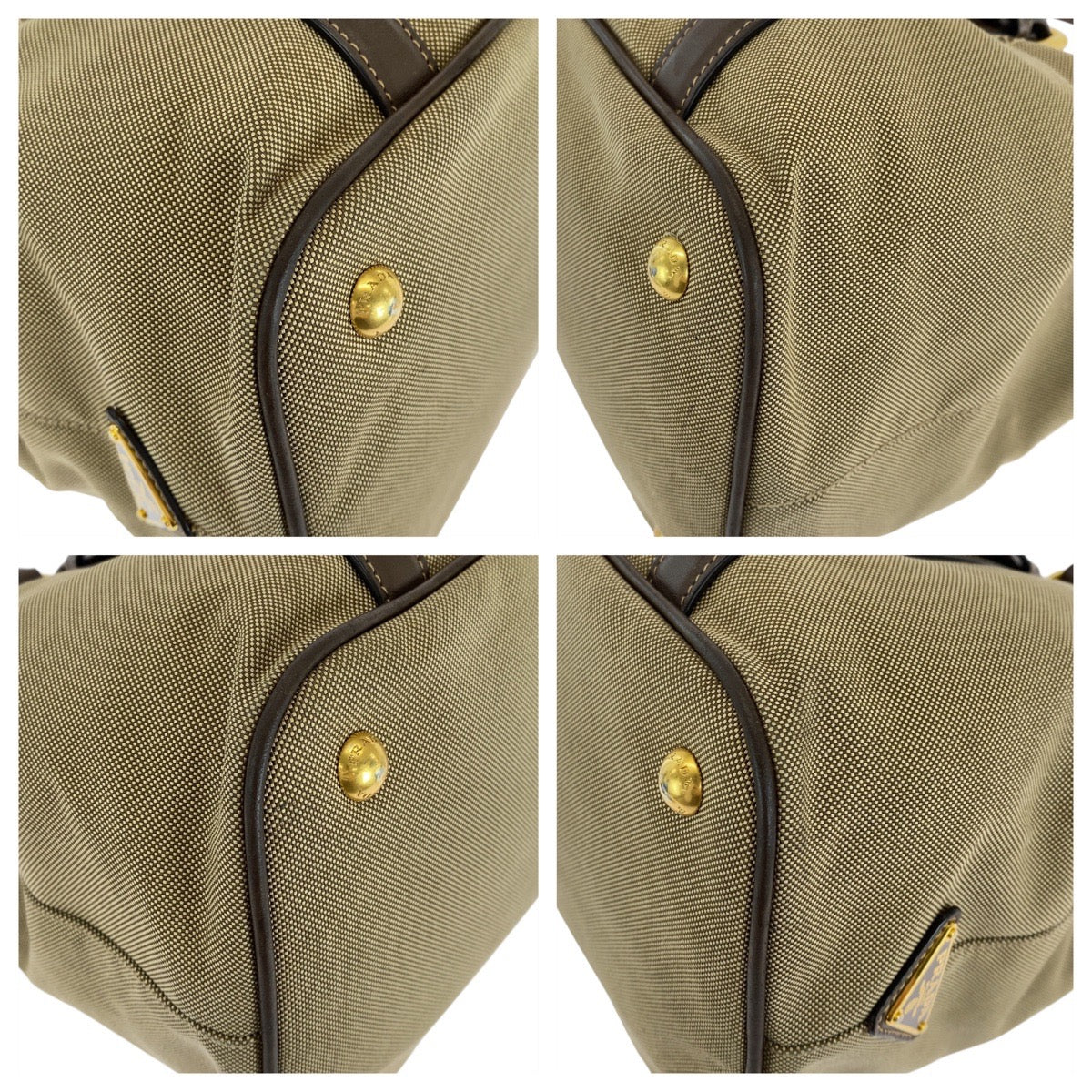 16626 PRADA プラダ ロゴジャガード 三角ロゴプレート カーキ ブラウン ゴールド金具 キャンバス / レザー トートバッグ ショルダーバッグ レディース ABP46