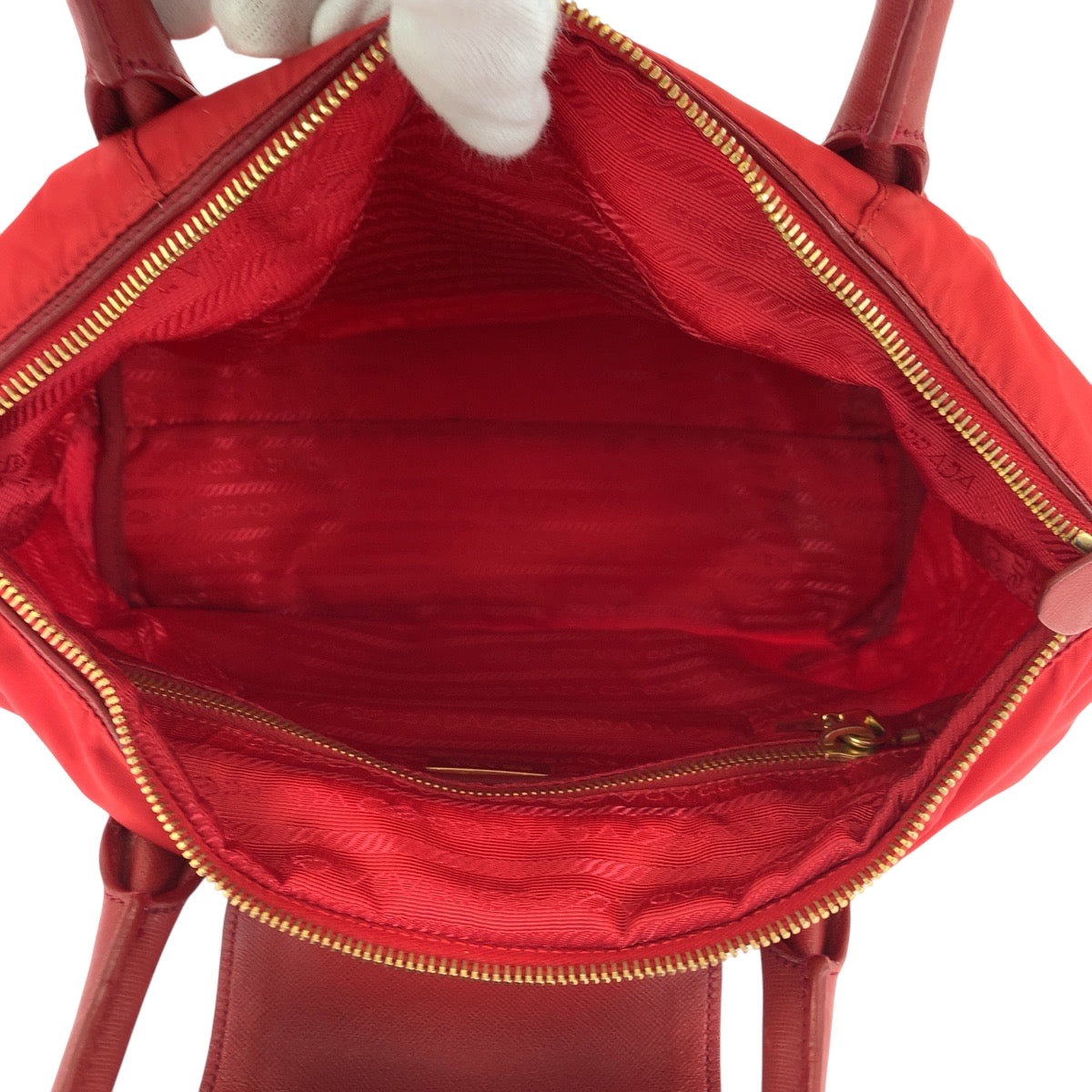 16687 PRADA プラダ テスート 三角ロゴプレート レッド ゴールド金具 ナイロン BN2106 トートバッグ ハンドバッグ レディース ABP44