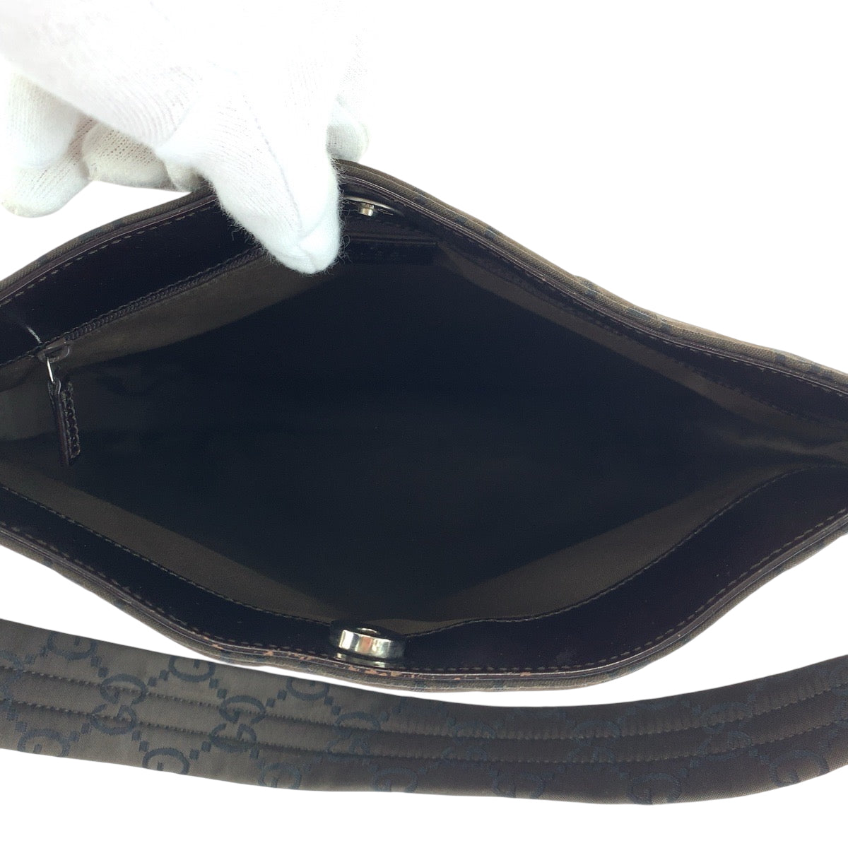 16693 GUCCI グッチ GG柄 ダークブラウン シルバー金具 ナイロン 001 3166 ショルダーバッグ レディース AB25