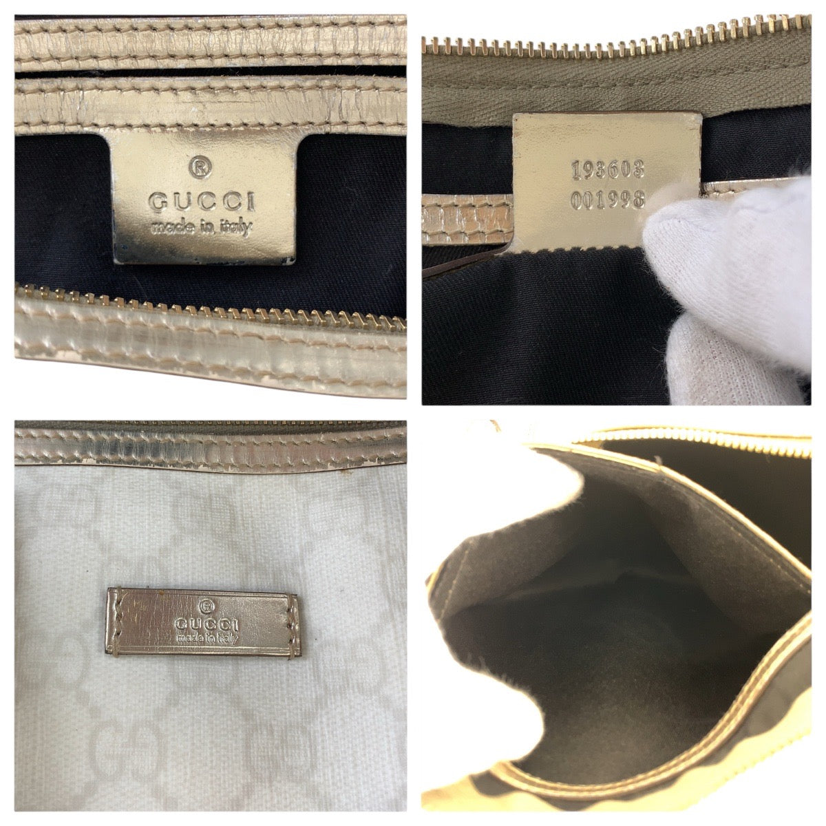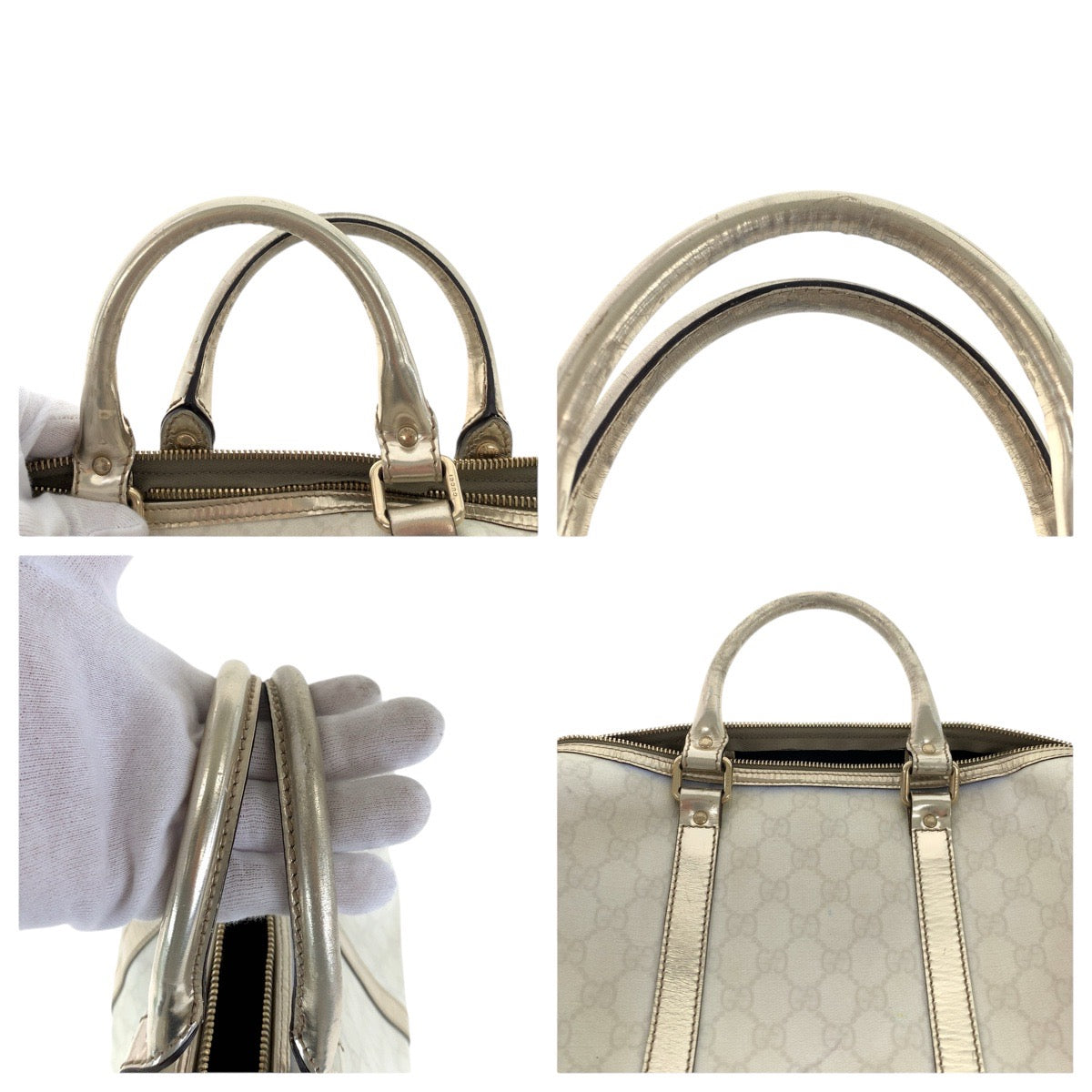 16742 GUCCI グッチ ホワイト ゴールド GGスプリームキャンバス / レザー 193603 ハンドバッグ ミニボストンバッグ レディース AB40