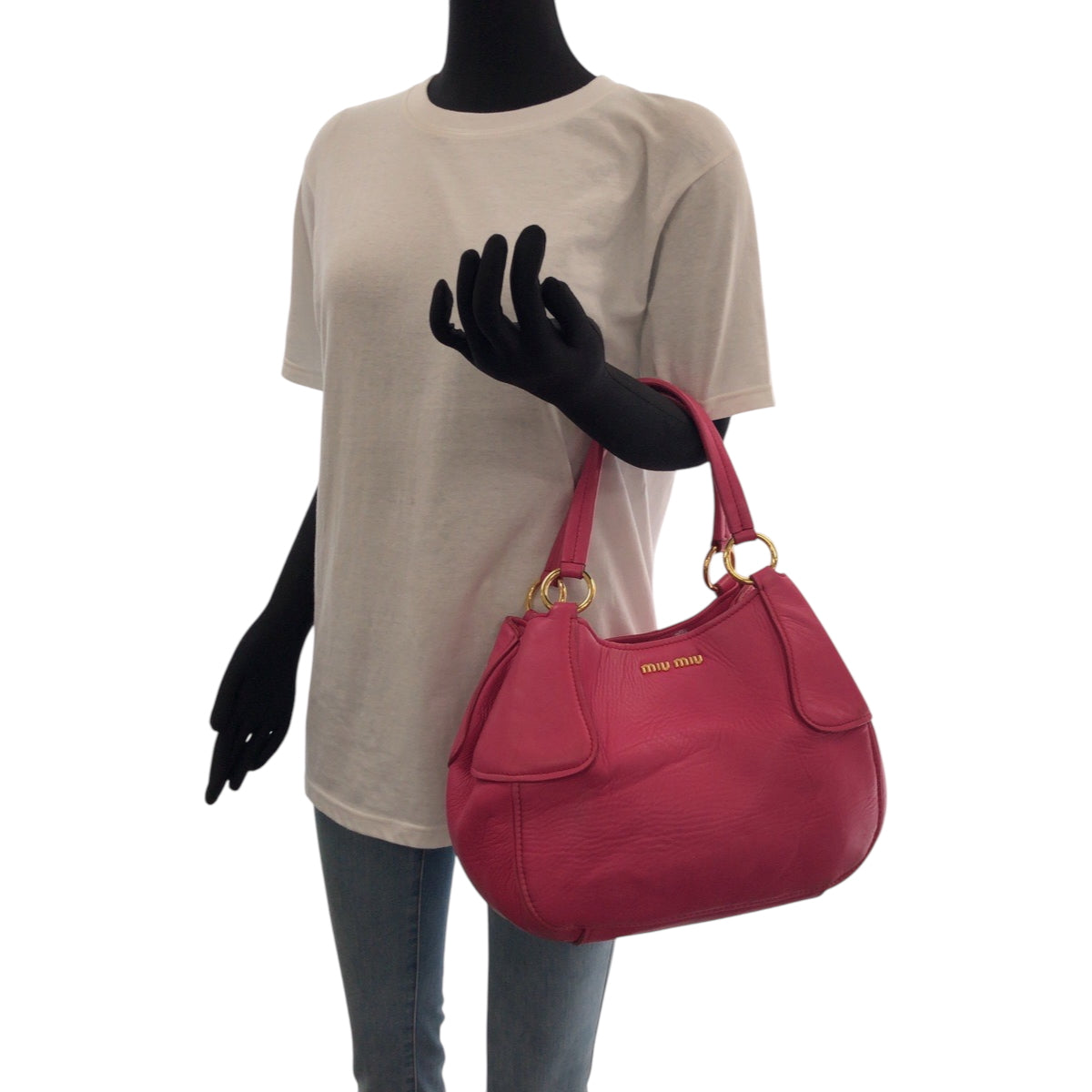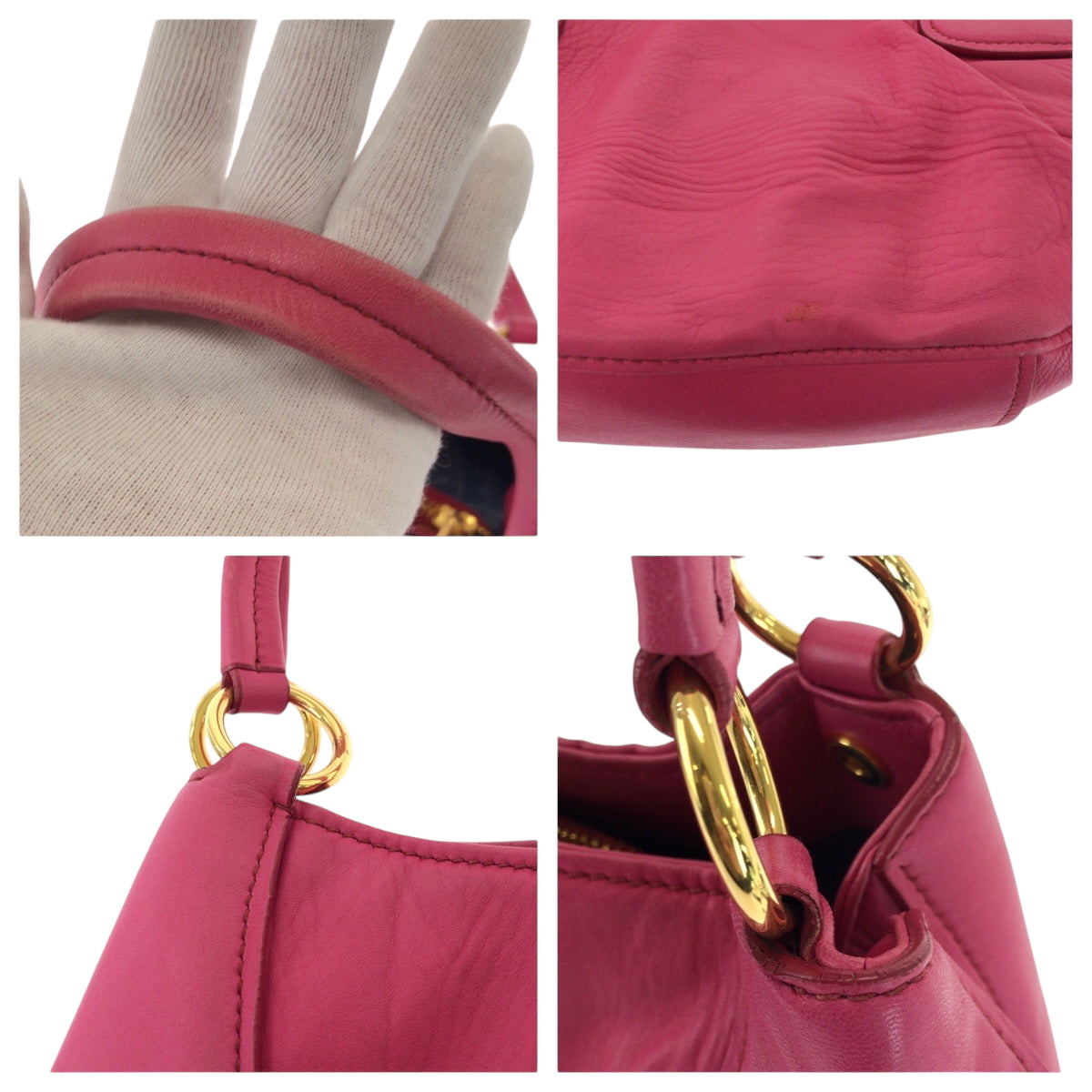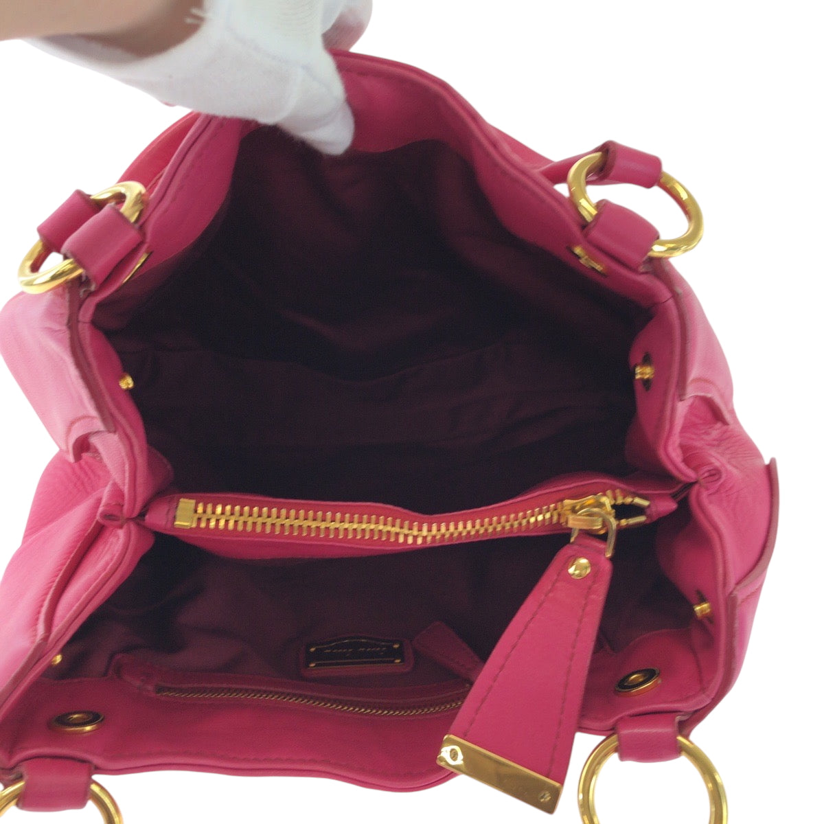 16755 MIUMIU ミュウミュウ ロゴ ピンク ゴールド金具 レザー ワンショルダーバッグ ハンドバッグ レディース ABP48