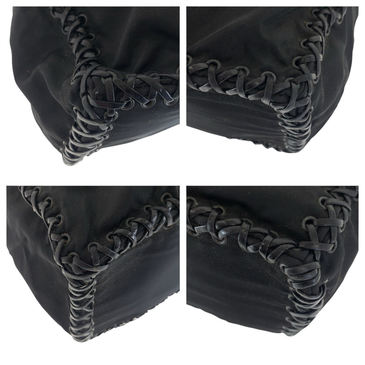 16773 PRADA プラダ ブラック 黒 ナイロン / レザー 斜め掛け ショルダーバッグ フリンジ レディース AB40