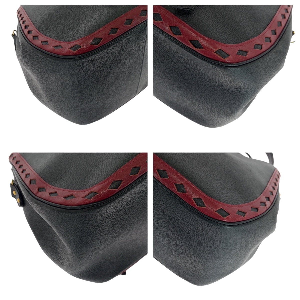 16823 YVES SAINT LAURENT イヴ サンローラン ヴィンテージ ダイヤカット ブラック 黒 レッド ゴールド金具 レザー ショルダーバッグ ハンドバッグ レディース ABP50