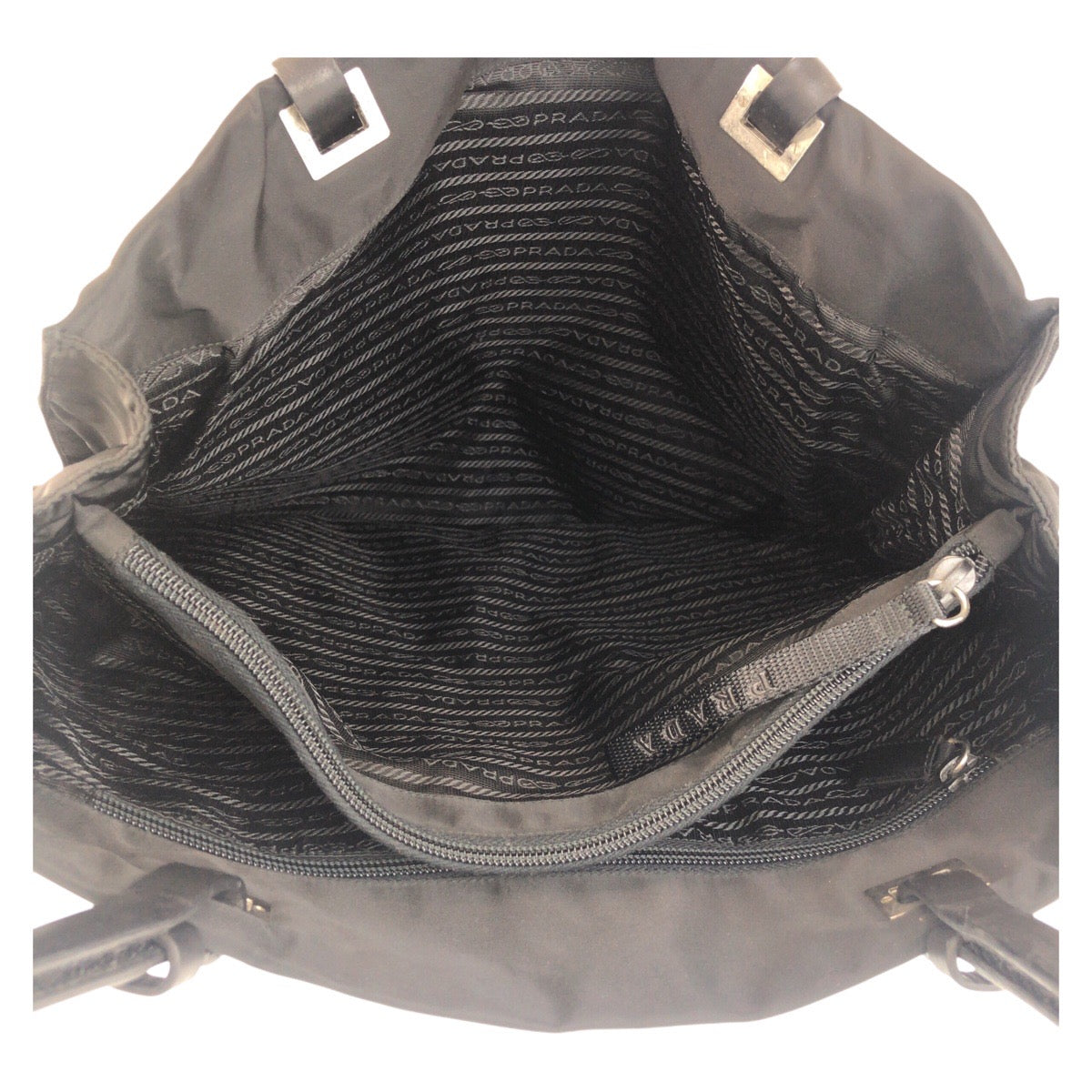 16888 PRADA プラダ テスート 三角ロゴプレート ブラック 黒 シルバー金具 ナイロン / レザー トートバッグ ショルダーバッグ レディース ABP38
