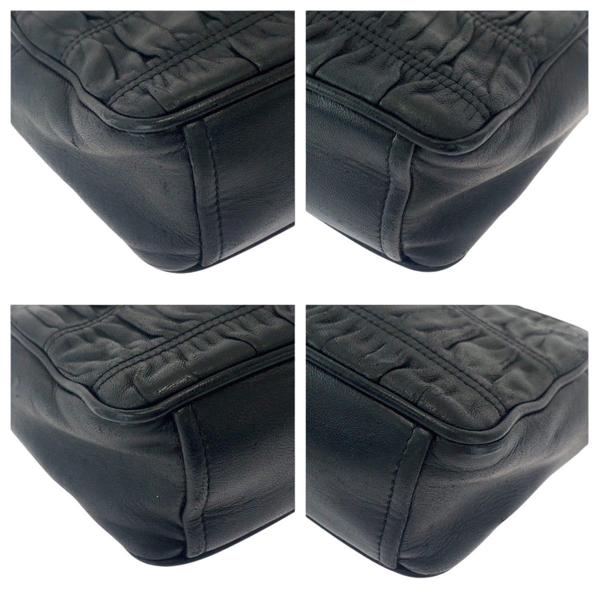 17089 PRADA プラダ ナッパレザー ギャザー ブラック 黒 ゴールド金具 レザー 1BH112 チェーンショルダーバッグ レディース AB66