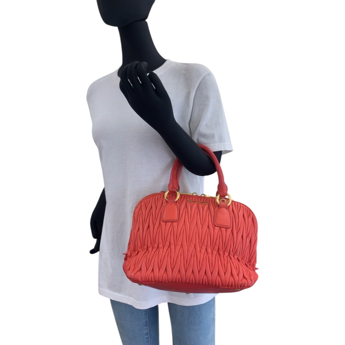17090 Miu Miu ミュウ ミュウ マテラッセ オレンジ ゴールド金具 レザー 5BB097 ショルダーバッグ ハンドバッグ 2way レディース AB52