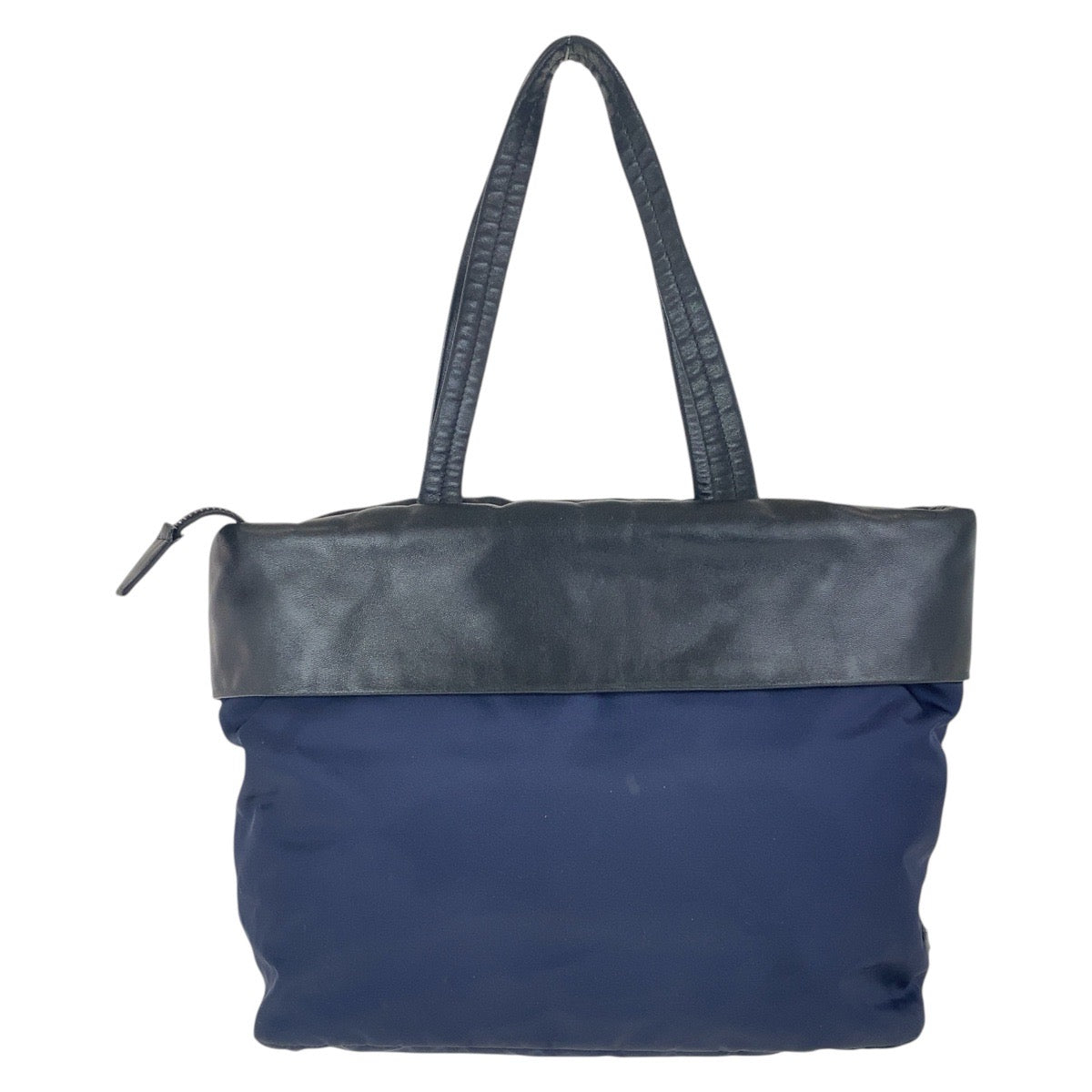 17156 PRADA プラダ テスート 三角ロゴプレート バイカラー ネイビー ブラック シルバー金具 ナイロン トートバッグ ショルダーバッグ レディース AB46