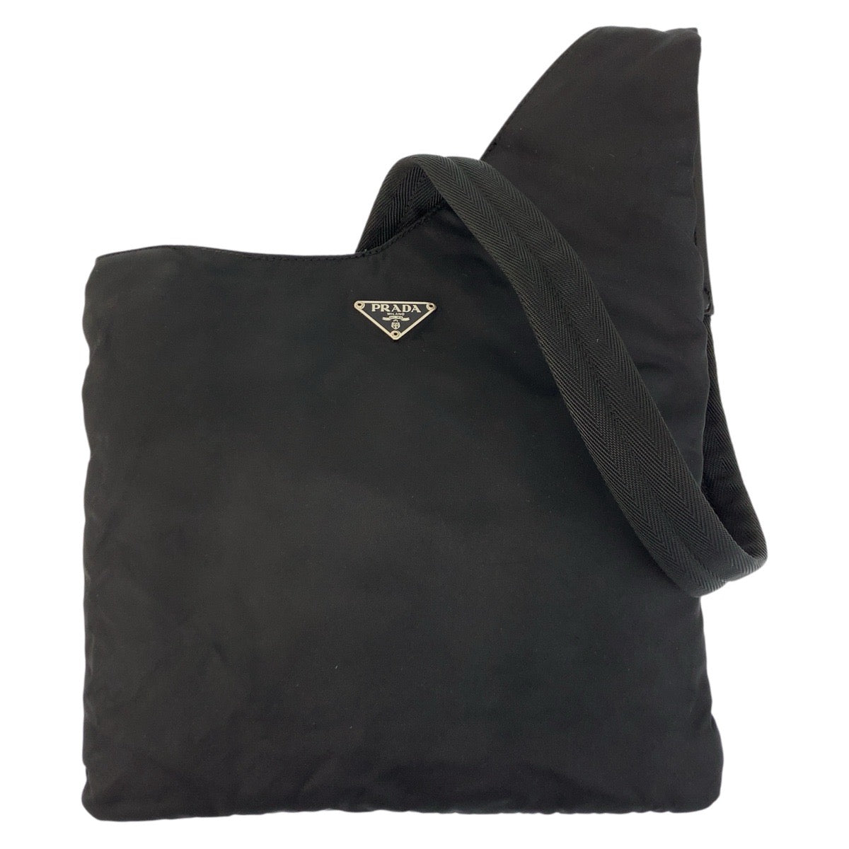 17170 PRADA プラダ テスート 三角ロゴプレート ブラック 黒 シルバー金具 ナイロン ショルダーバッグ メッセンジャーバッグ レディース AB39