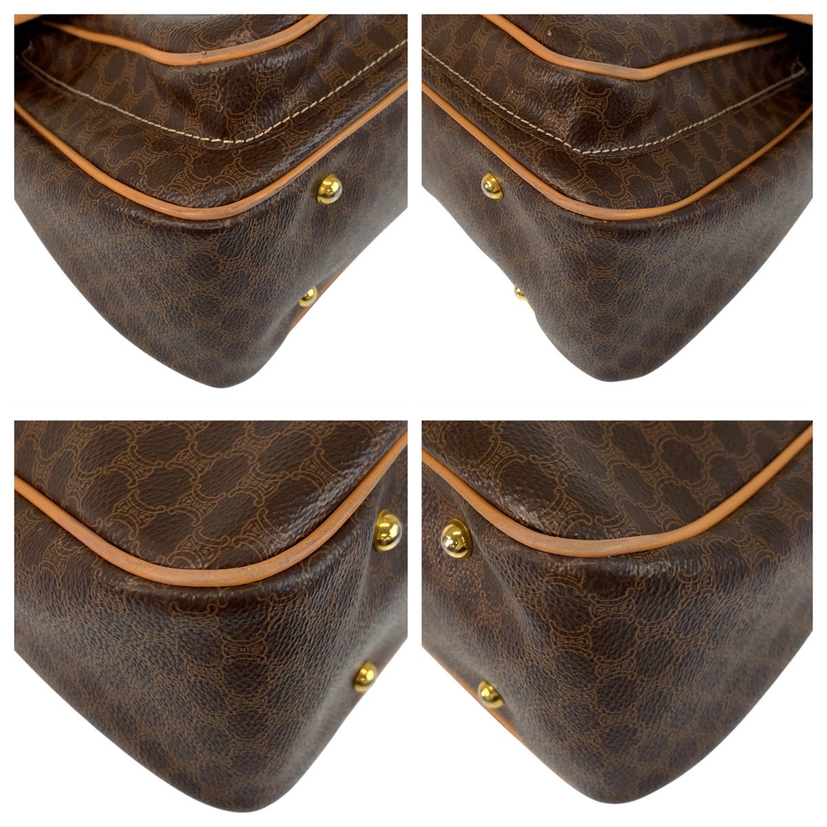 17181 CELINE セリーヌ ヴィンテージ マカダム ブラウン ゴールド金具 PVC / レザー M14 ハンドバッグ レディース ABP36