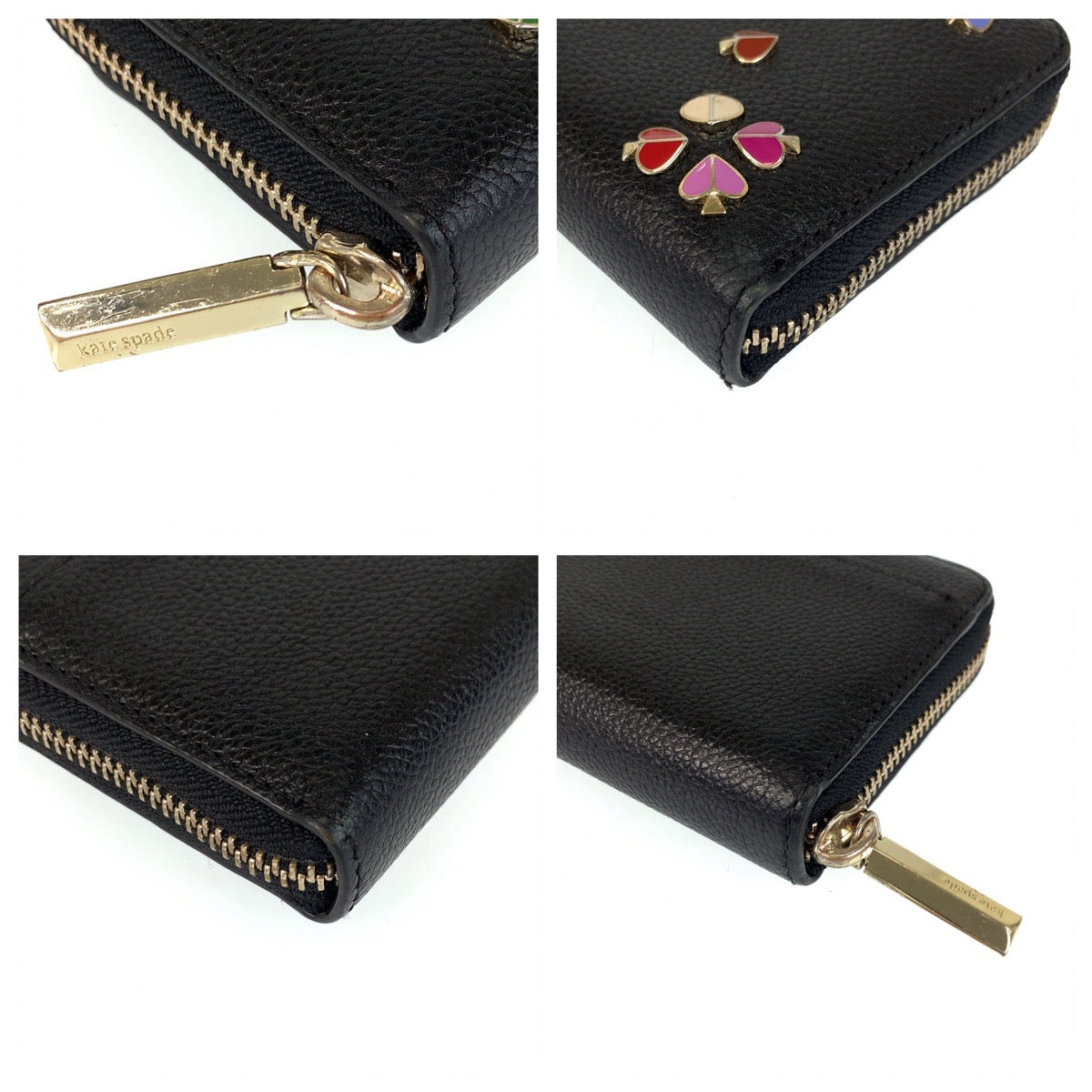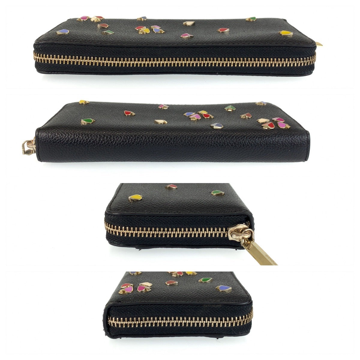 17209 Kate Spade ケイトスペード スタッズ スペード ブラック 黒 ゴールド金具 レザー 長財布 ラウンドファスナー レディース AB5
