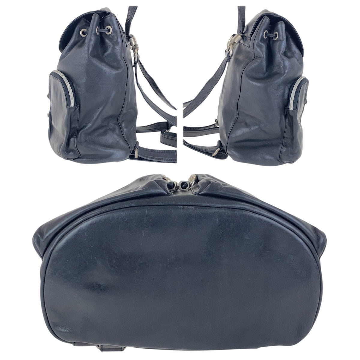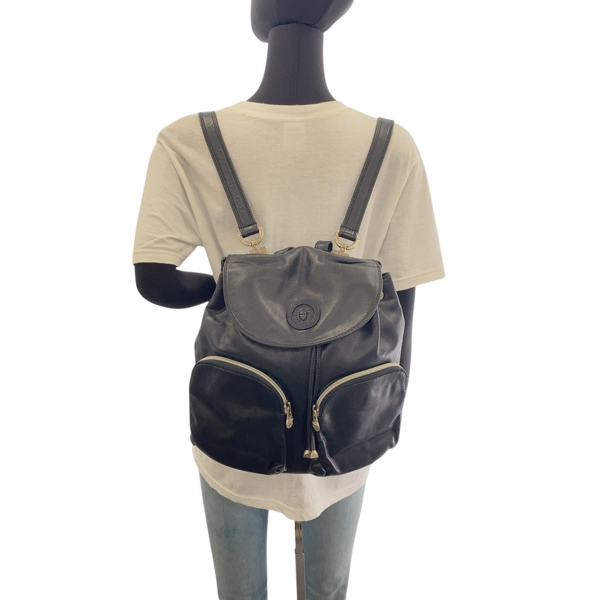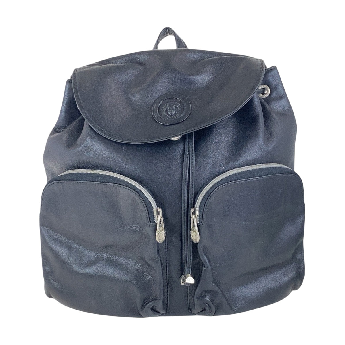 17225 VERSACE ヴェルサーチ ヴィンテージ メドゥーサ ブラック 黒 シルバー金具 レザー バックパック リュックサック 男女兼用 レディース ABP74