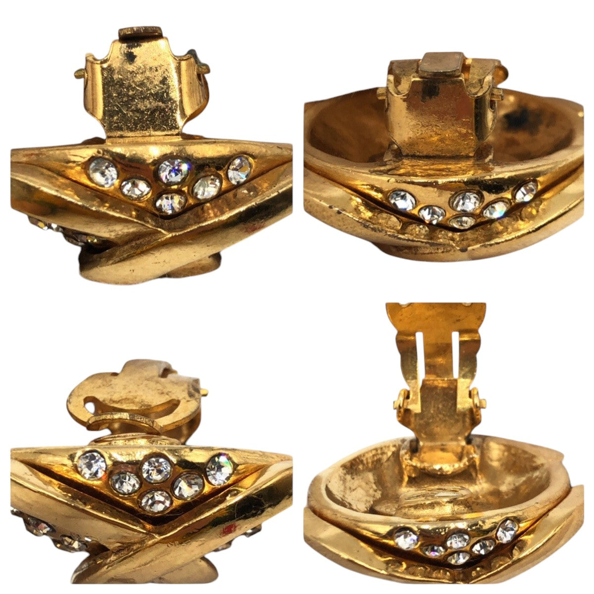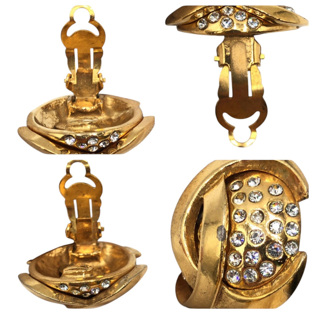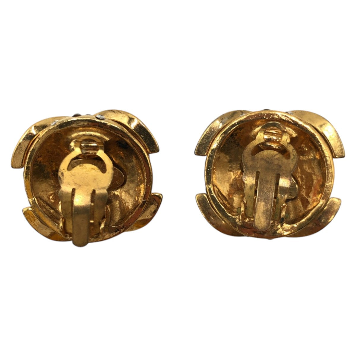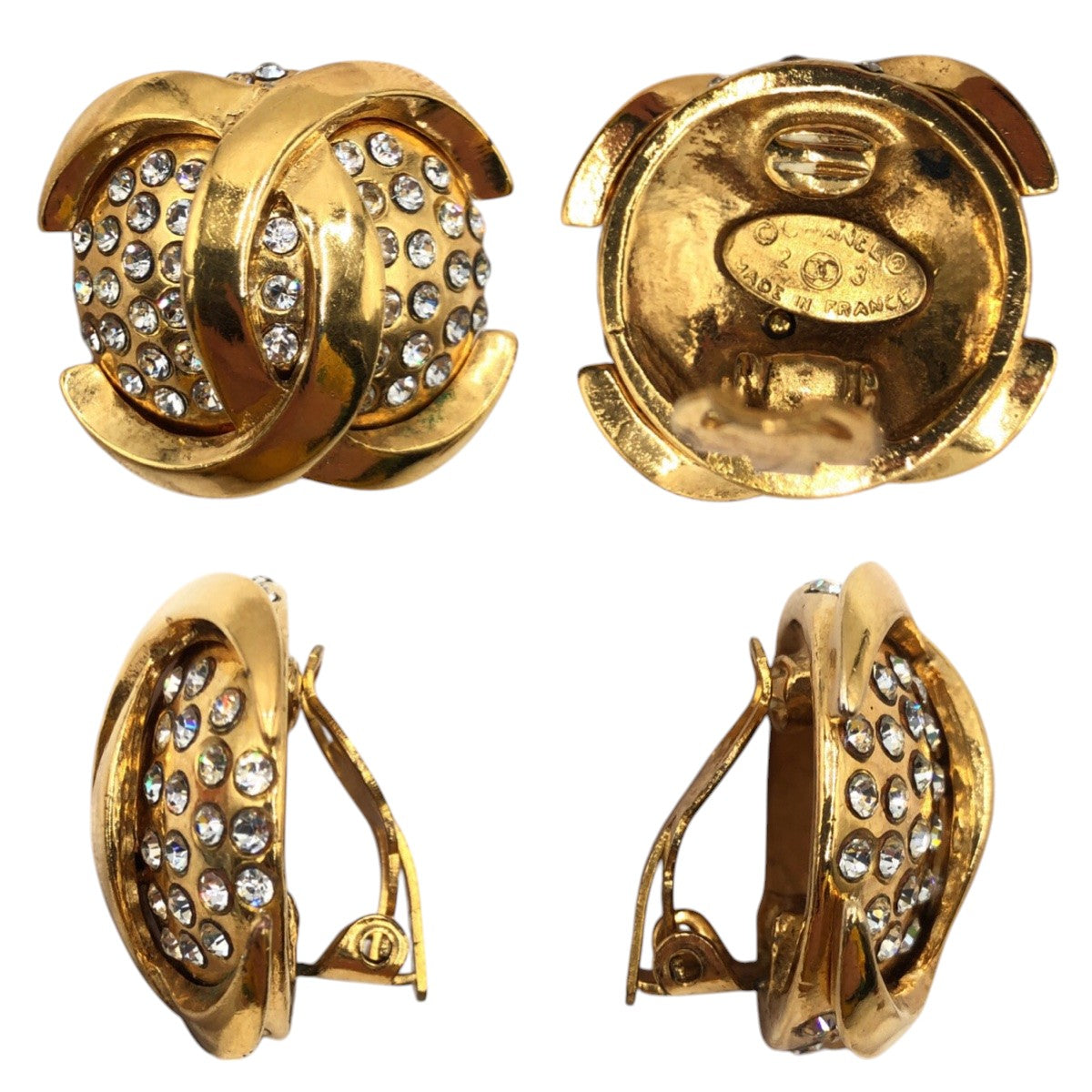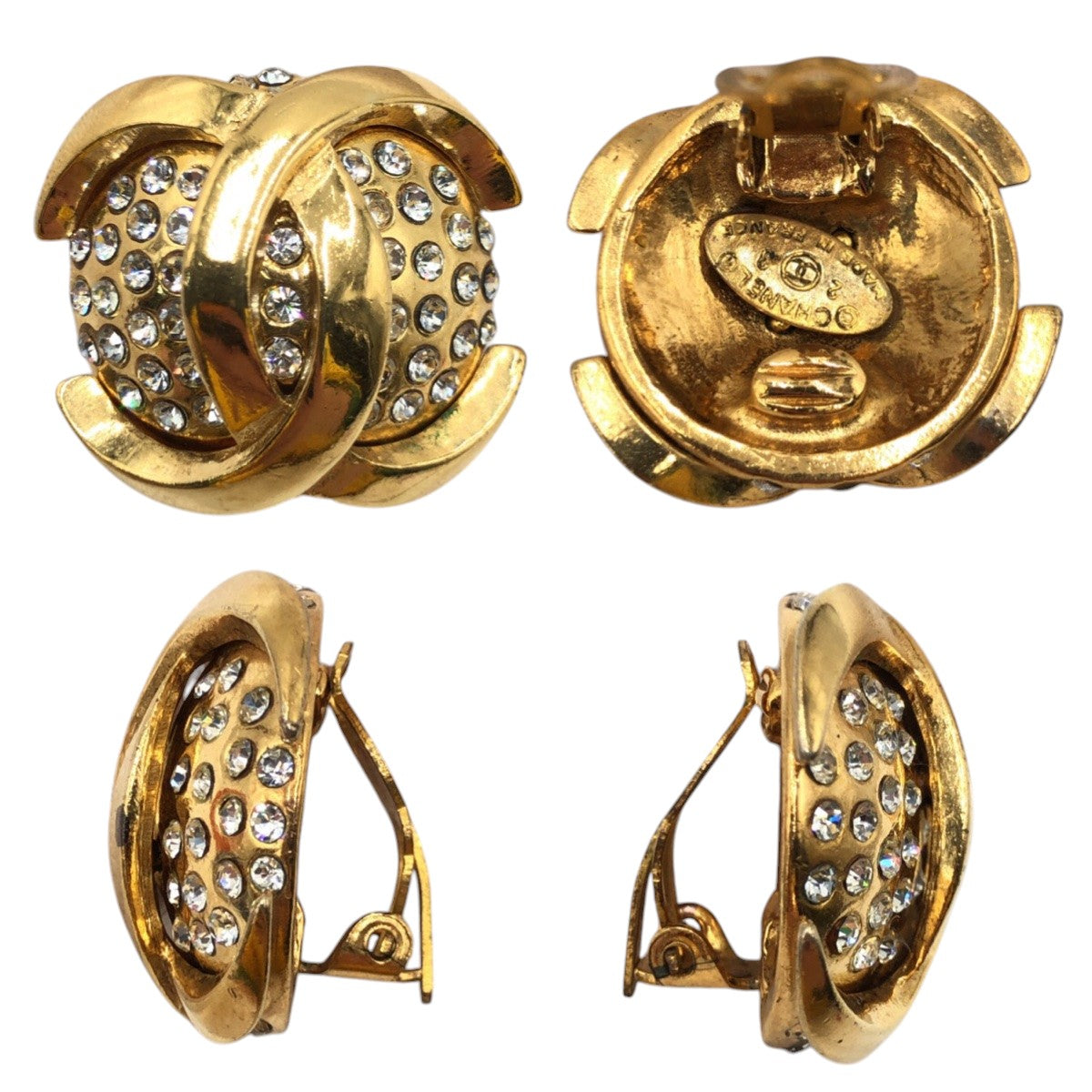 17247 CHANEL シャネル ヴィンテージ ココマーク ゴールド メタル / ラインストーン イヤリング レディース ABP52