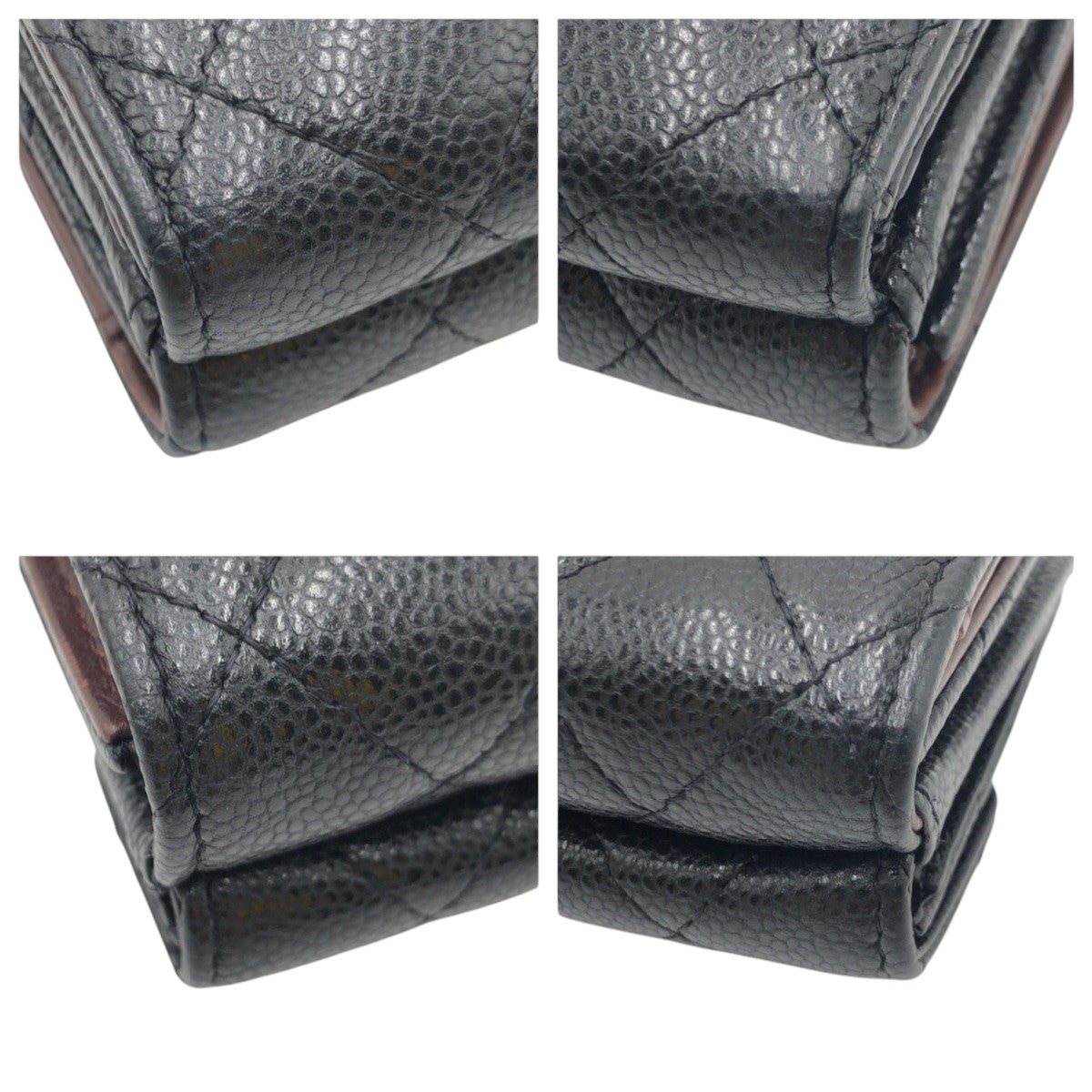 17251 CHANEL シャネル マトラッセ ココマーク ブラック 黒 レザー 三つ折り財布 折財布 コンパクトウォレット レディース A72