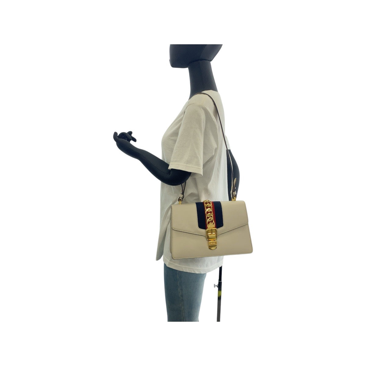17270 GUCCI グッチ シェリーライン シルヴィ アイボリー 白 ゴールド金具 レザー 421882 ショルダーバッグ レディース AB74