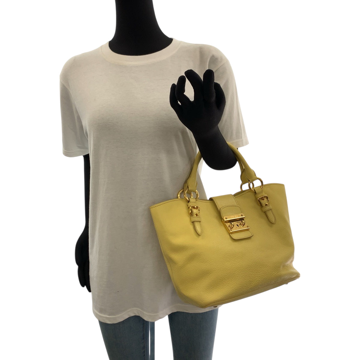 17298 Miu Miu ミュウ ミュウ マドラス イエロー ゴールド金具 レザー 197 B ショルダーバッグ ハンドバッグ 2way レディース ABP63