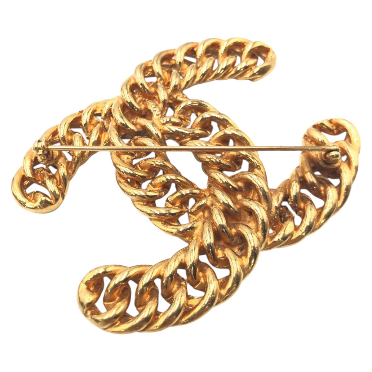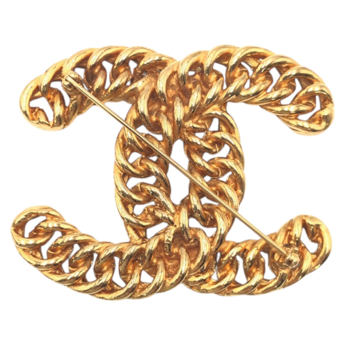17375 CHANEL シャネル ヴィンテージ ビッグ チェーン ココマーク ゴールド メタル ブローチ レディース A65