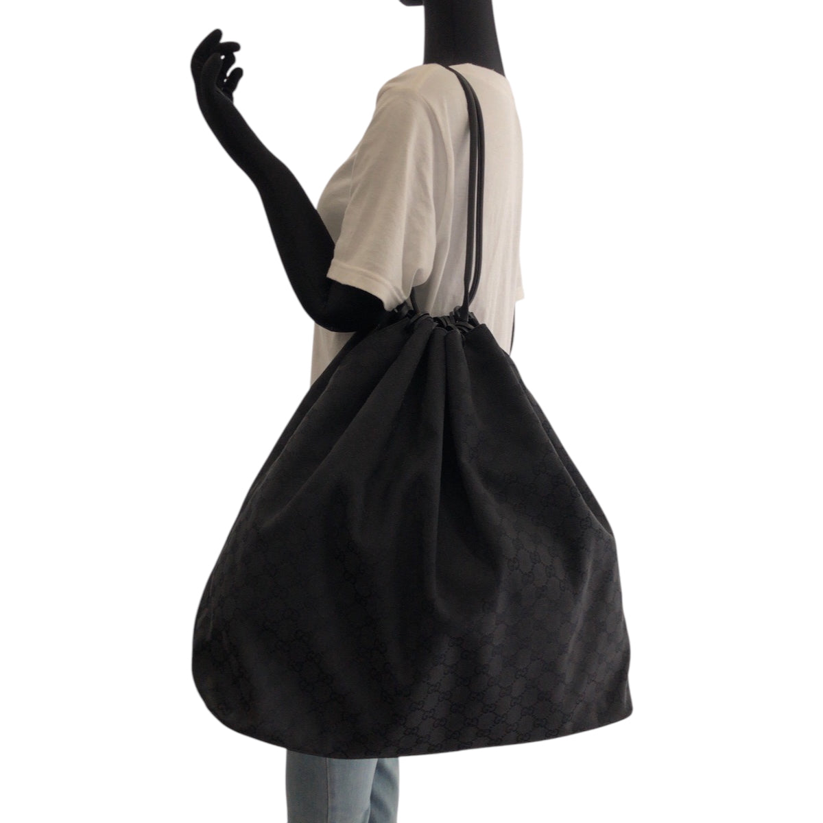 17573 GUCCI グッチ ブラック 黒 ブラック金具 GGキャンバス 91379 巾着 ショルダーバッグ レディース ABP48