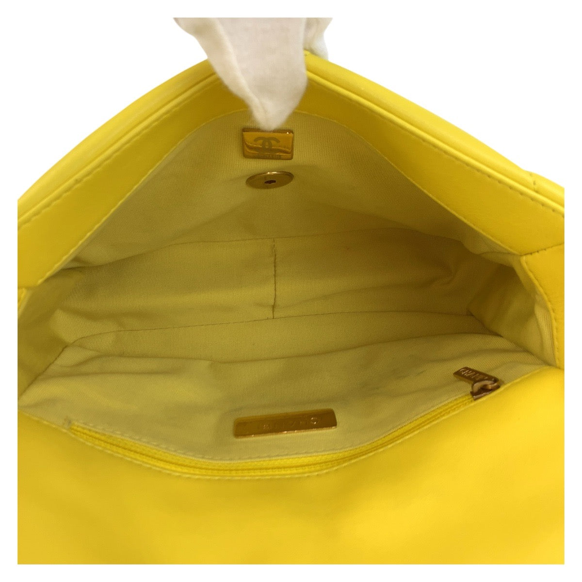 17593 CHANEL シャネル マトラッセ 19 ココマーク ターンロック イエロー ゴールド金具 ラムスキン チェーンショルダーバッグ レディース ABP490