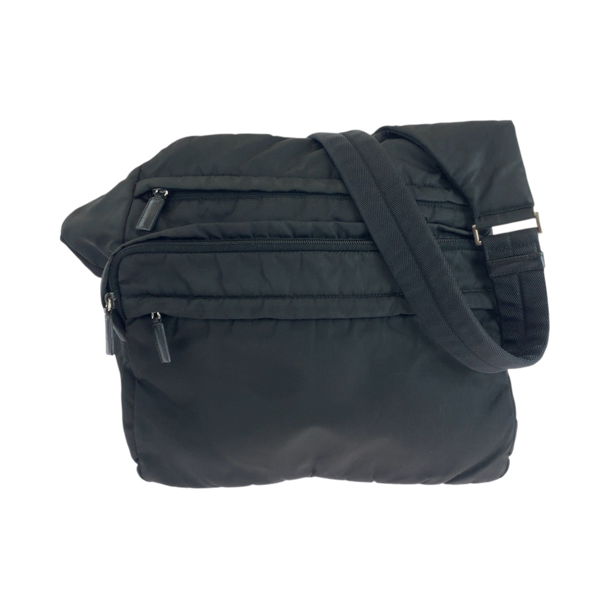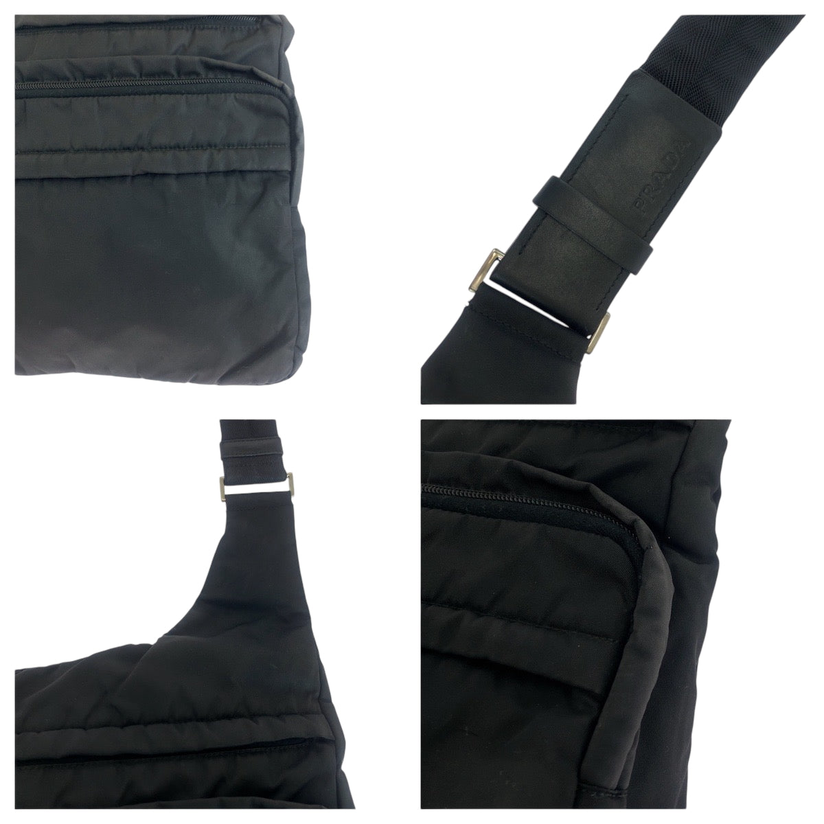 17619 PRADA プラダ テスート 三角ロゴプレート 男女兼用 ブラック 黒 シルバー金具 ナイロン ショルダーバッグ メッセンジャーバッグ メンズ AB45