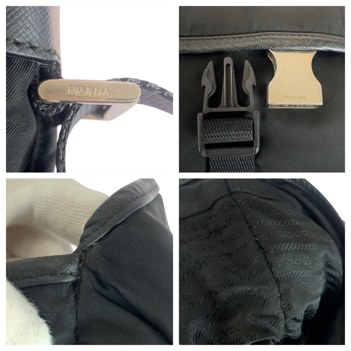 17621 PRADA プラダ テスート 三角ロゴプレート ブラック 黒 シルバー金具 ナイロン / レザー ショルダーバッグ メッセンジャーバッグ メンズ AB45