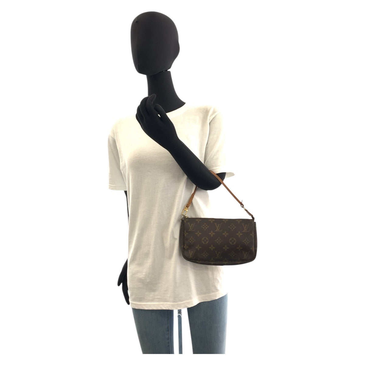 17665 LOUIS VUITTON ルイヴィトン モノグラム ポシェット アクセソワール ブラウン ゴールド金具 PVC / レザー M51980 ハンドバッグ アクセサリーポーチ レディース AB54