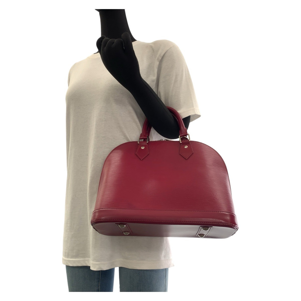 17762 LOUIS VUITTON ルイヴィトン エピ アルマ フューシャ ワインレッド ボルドー シルバー金具 レザー M40490 ハンドバッグ レディース ABP76