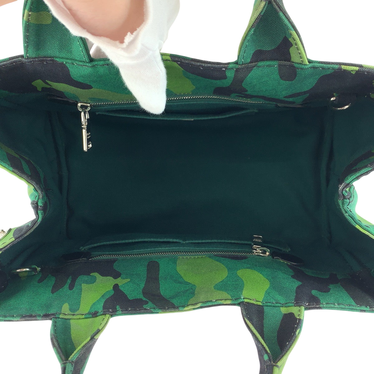 17768 PRADA プラダ カナパトート カモフラ柄 ロゴ グリーン マルチカラー シルバー金具 キャンバス B2642B ショルダーバッグ トートバッグ 2way レディース ABP70