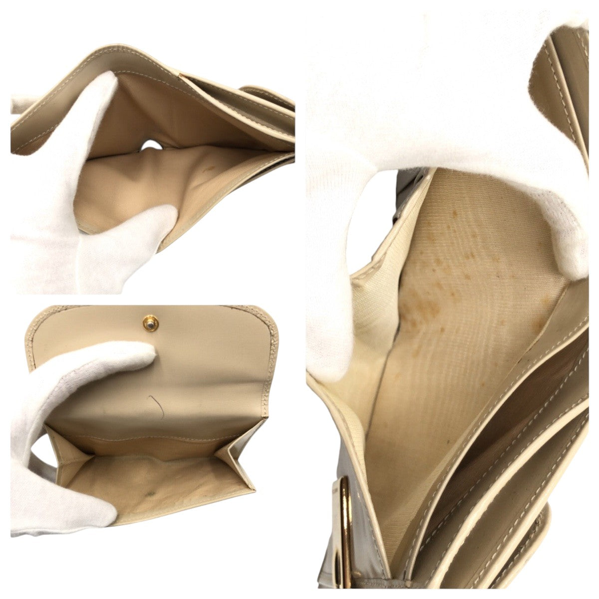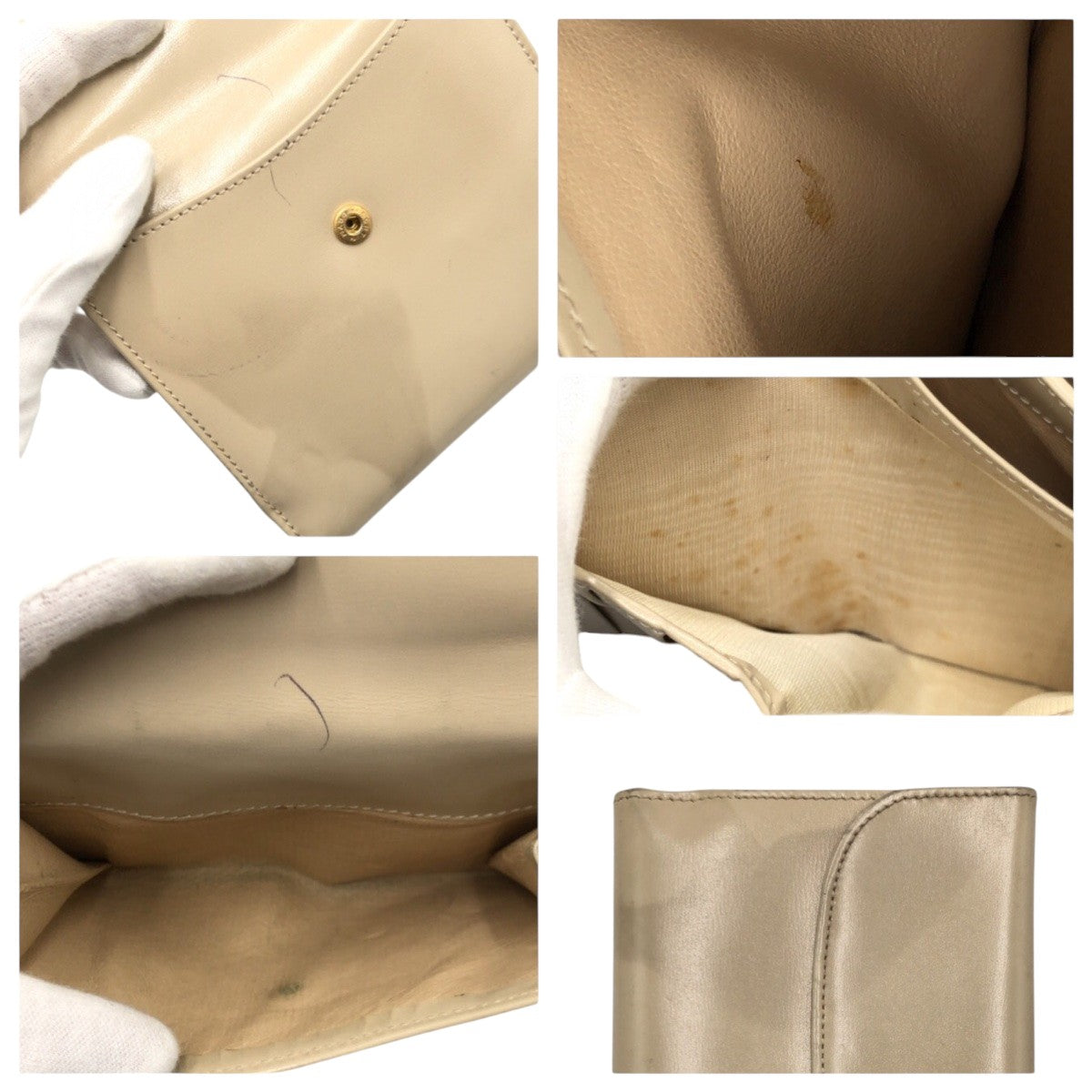 17784 GUCCI グッチ Gクリップ ベージュ ゴールド レザー 折財布 二つ折り財布 コンパクトウォレット レディース B4