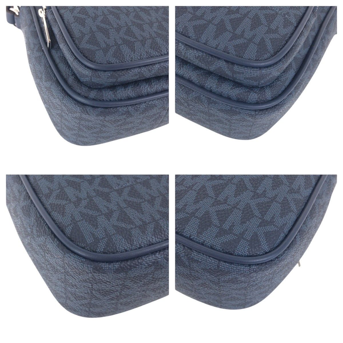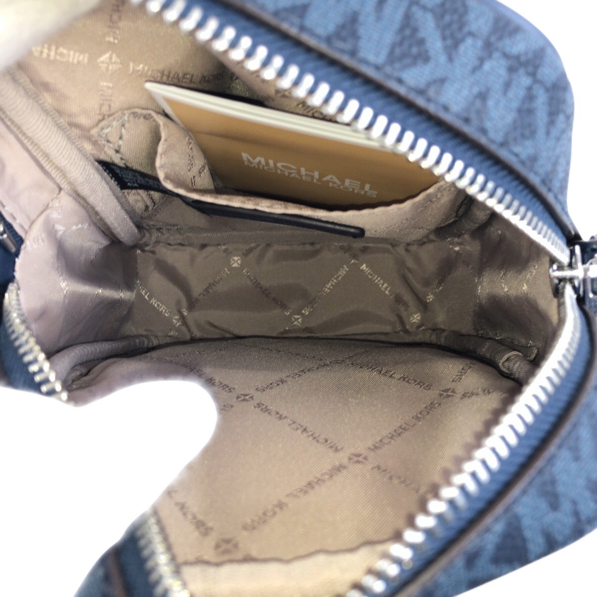 17837 Michael Kors マイケルコース ネイビー ベージュ シルバー金具 レザー 斜め掛け ショルダーバッグ レディース N23
