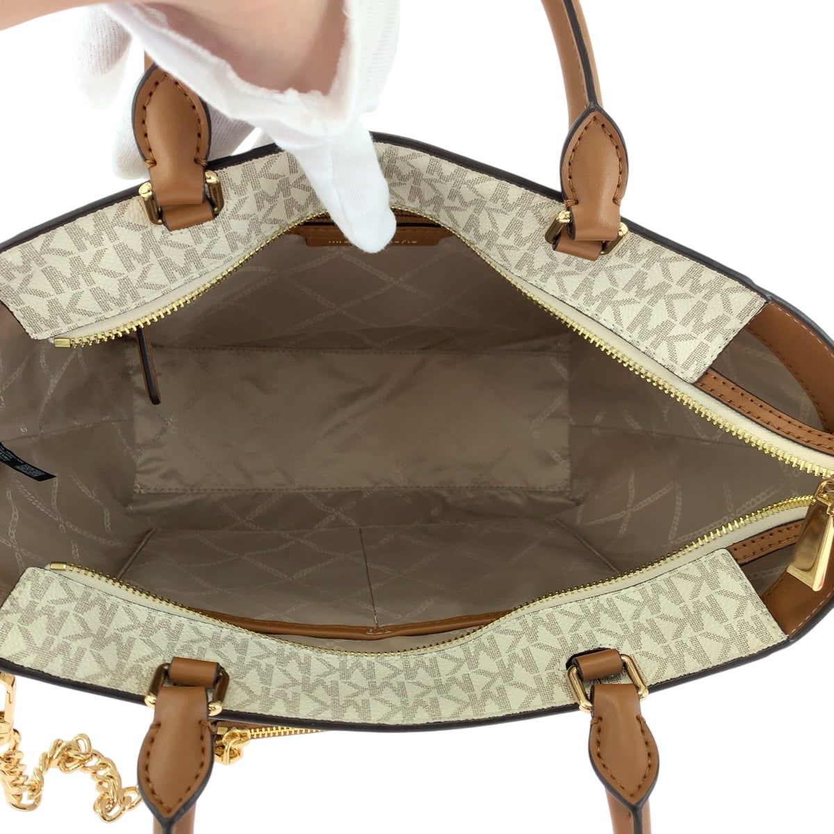 17858 Michael Kors マイケルコース サッチェル ミディアム アイボリー グレー ゴールド金具 PVC ショルダーバッグ ハンドバッグ 2way レディース SA18