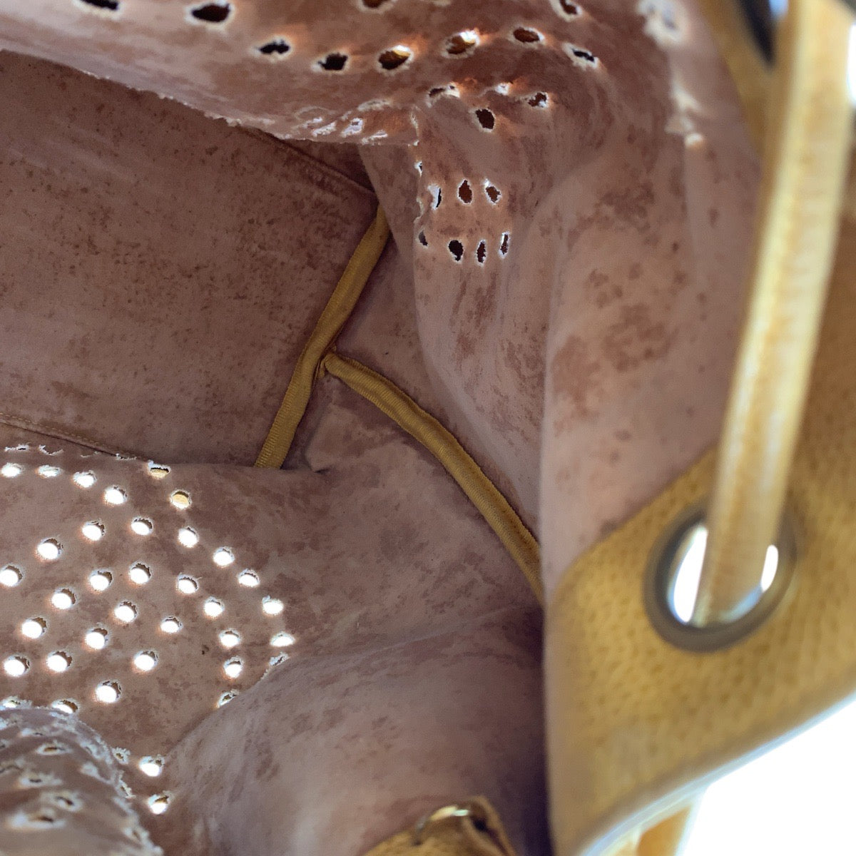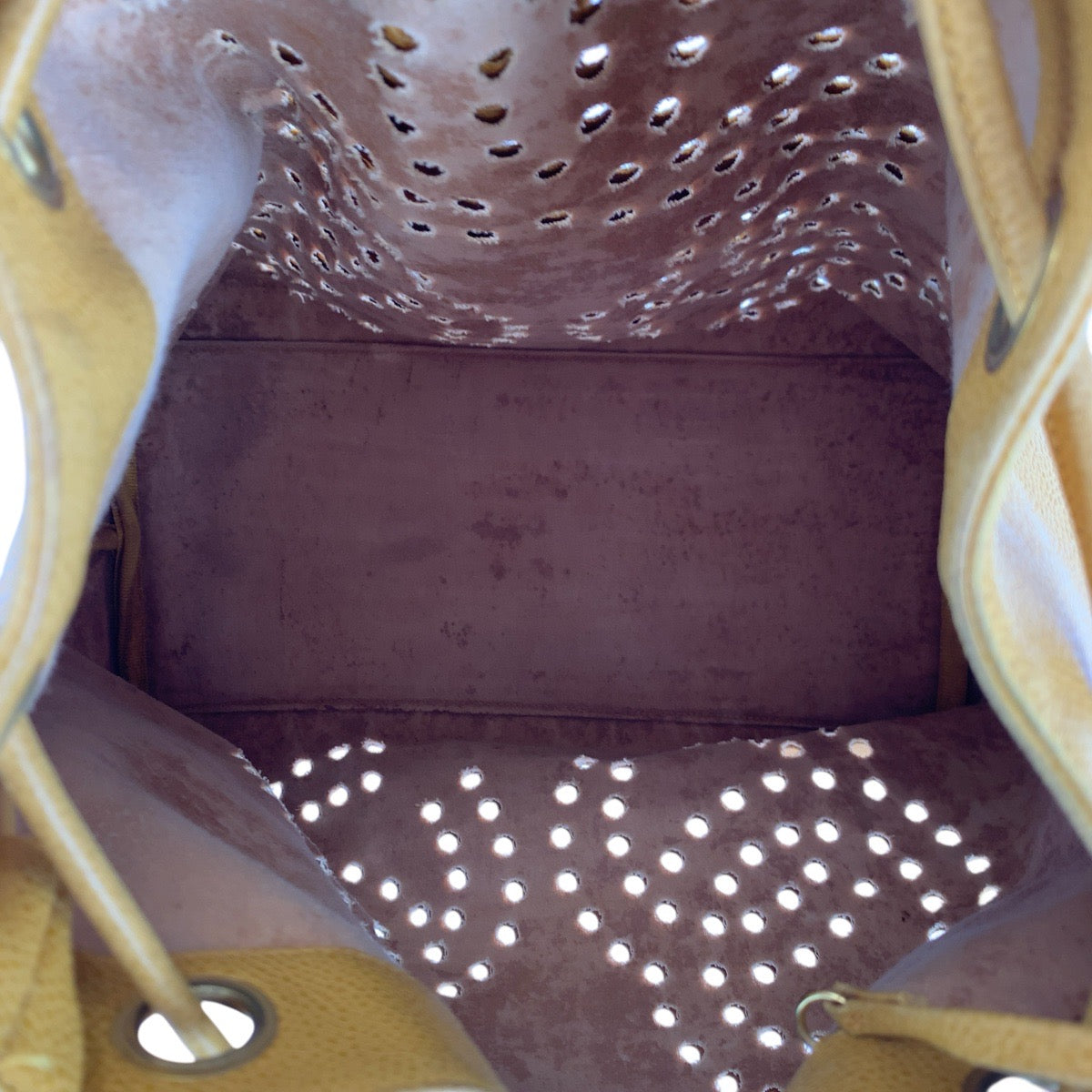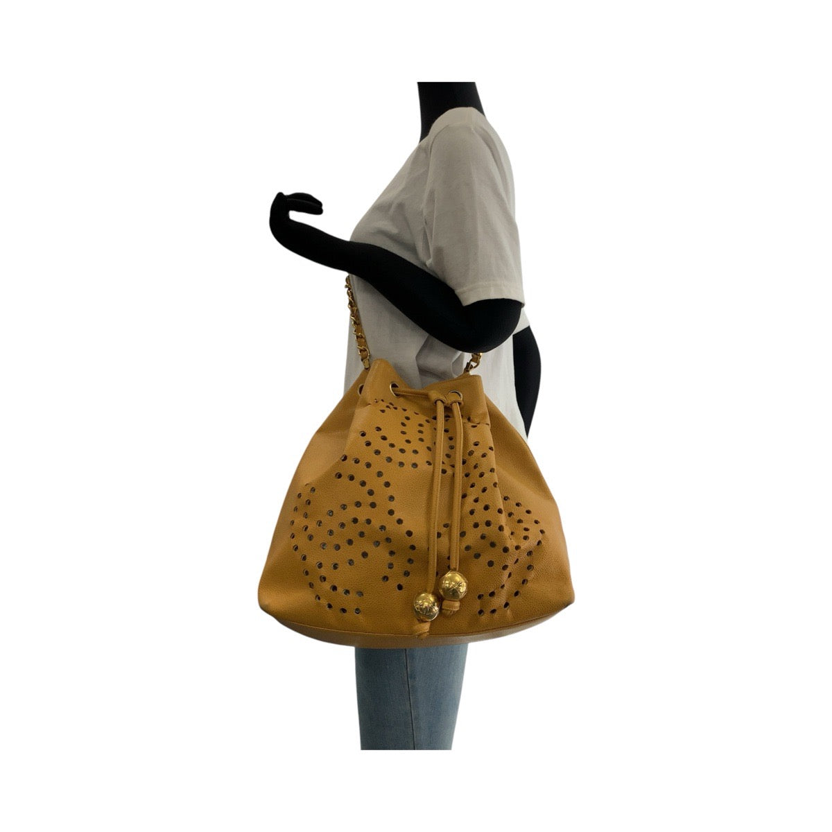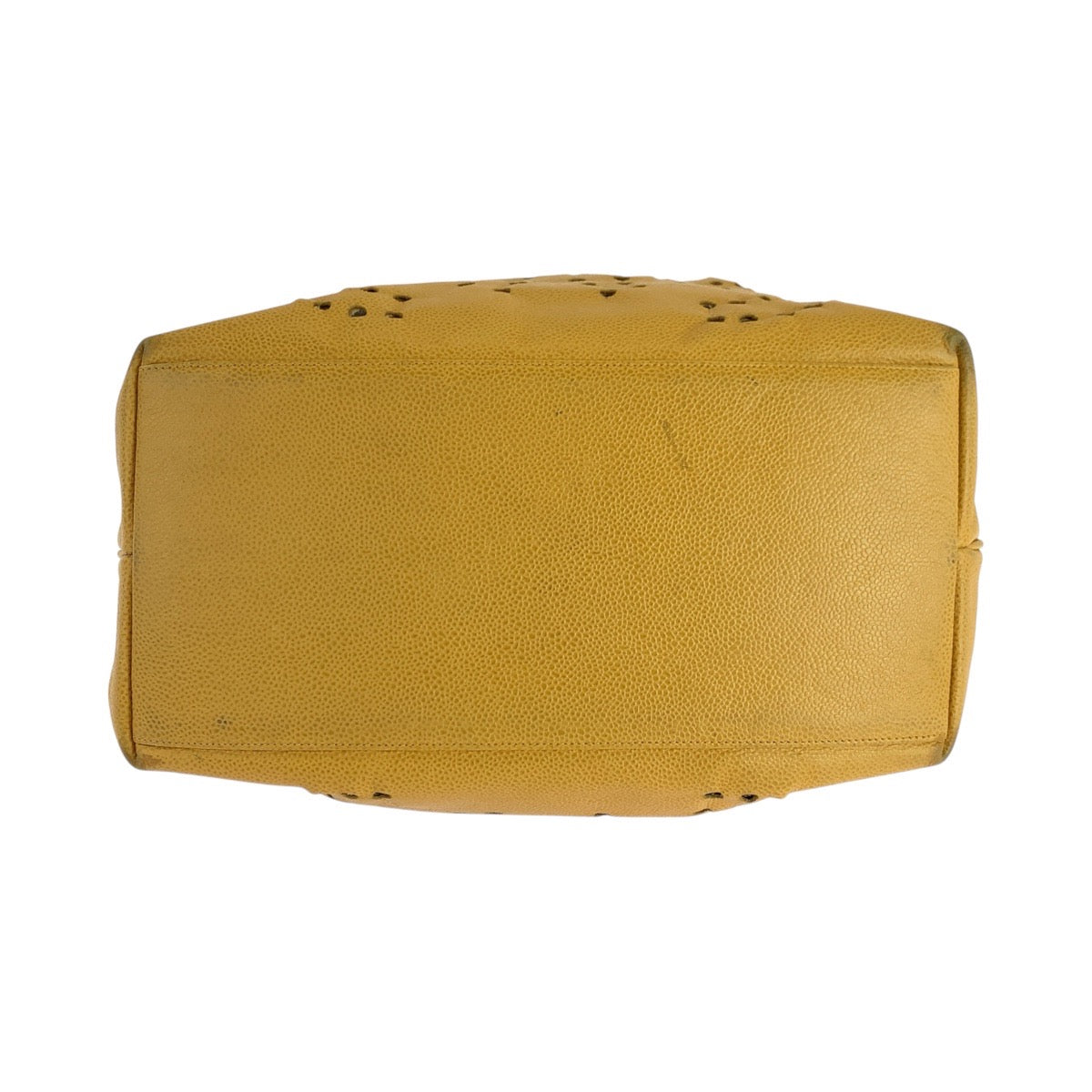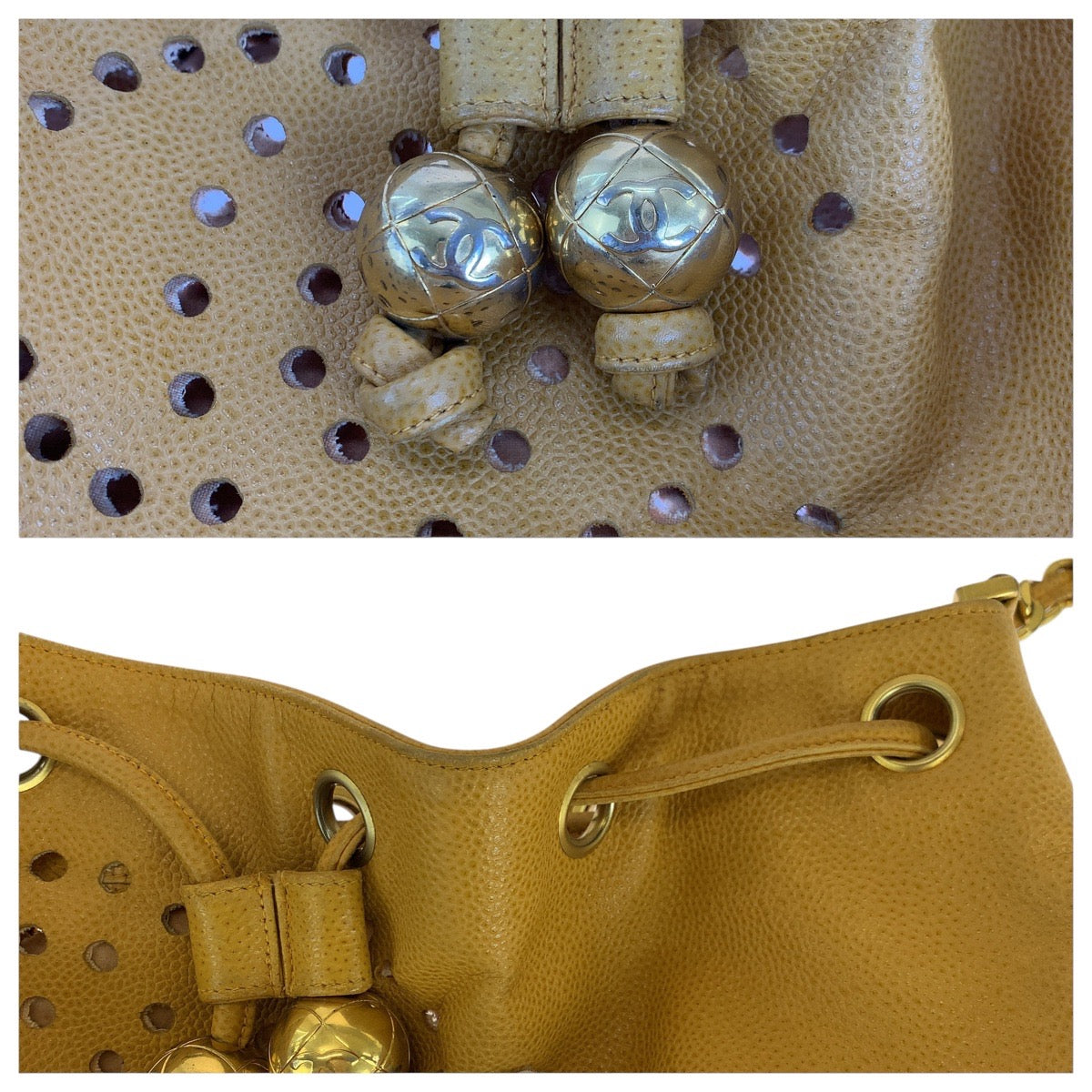 17873 CHANEL シャネル ヴィンテージ パンチング トリプルココマーク イエロー ゴールド金具 キャビアスキン 巾着 ショルダーバッグ レディース AB92