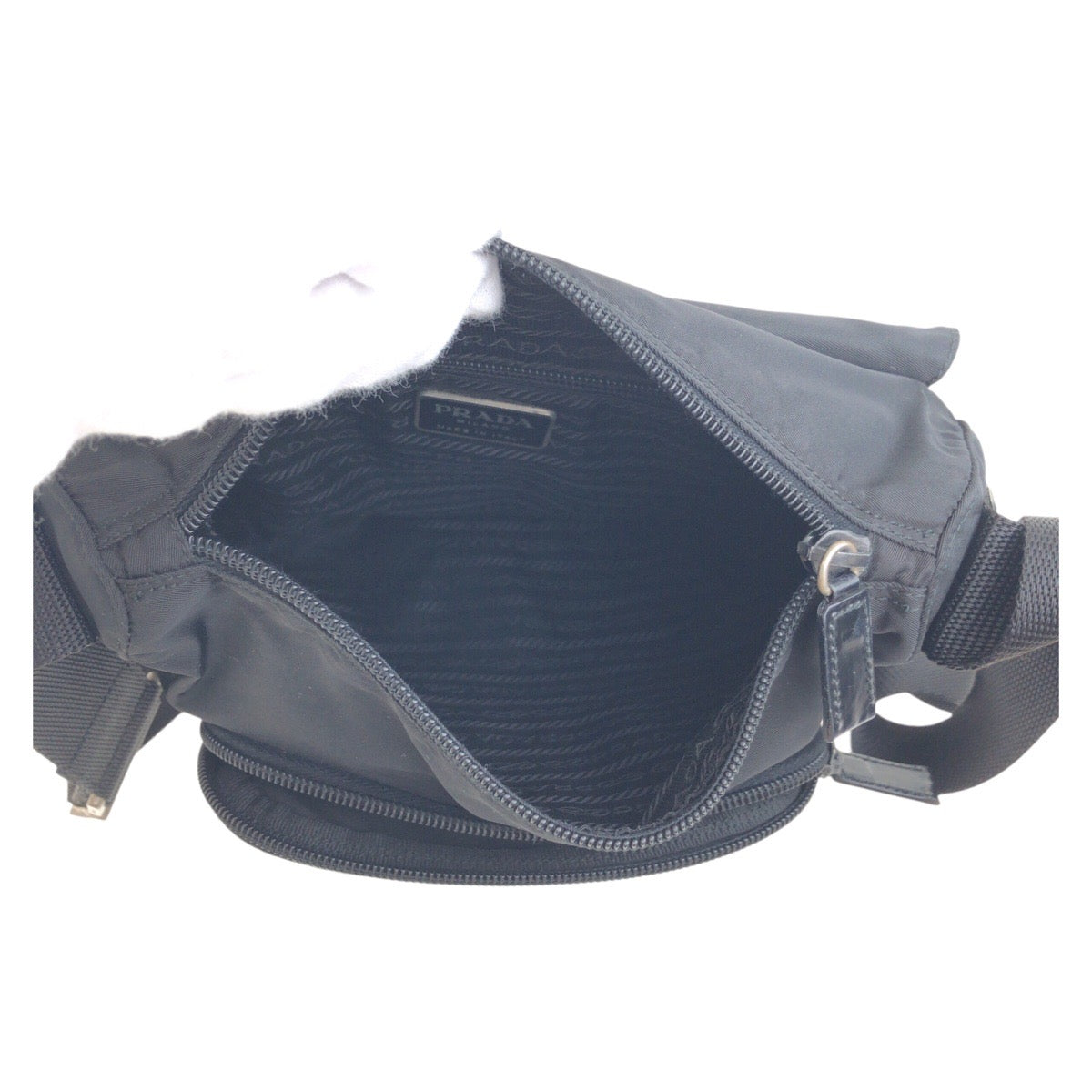 17877 PRADA プラダ テスート 三角ロゴプレート ブラック 黒 シルバー金具 ナイロン / レザー ショルダーバッグ ポシェット レディース ABP