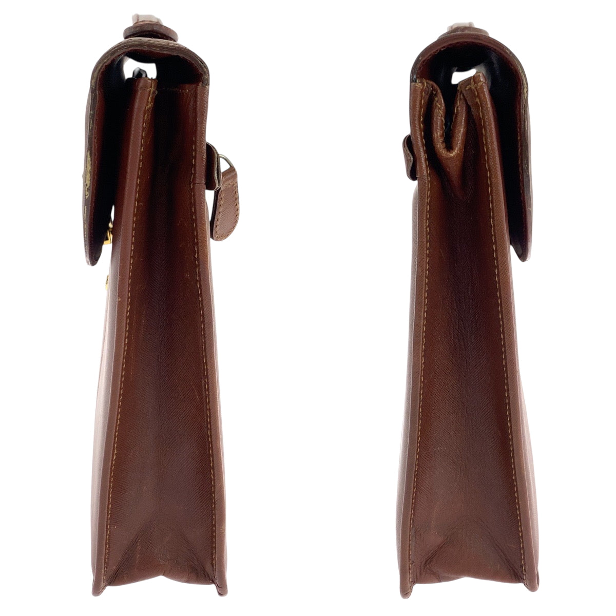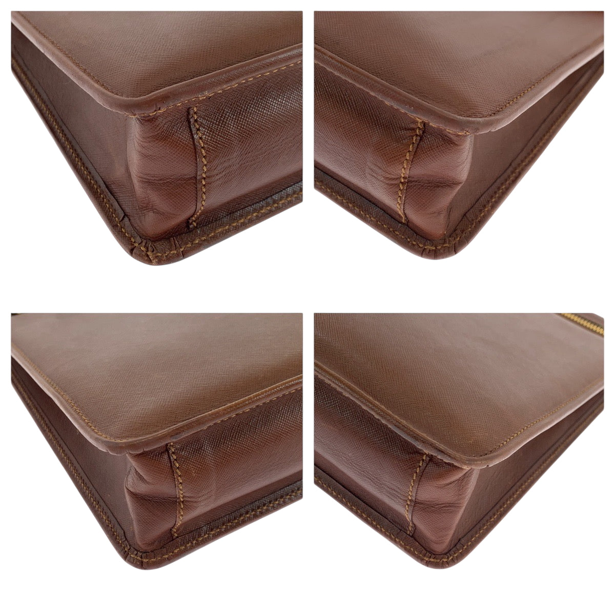 17882 PRADA プラダ サフィアーノ ブラウン ゴールド金具 レザー ビジネスバッグ ハンドバッグ メンズ ABP