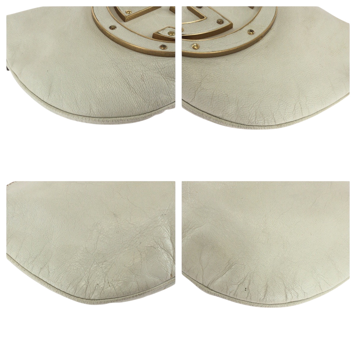 17892 GUCCI グッチ ソーホー インターロッキング ホワイト ゴールド金具 レザー 121552 ホーボー ショルダーバッグ 肩掛け レディース AB52