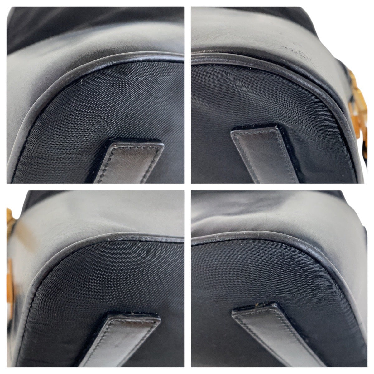 17918 PRADA プラダ テスート 三角ロゴプレート ブラック 黒 ゴールド金具 ナイロン / レザー ショルダーバッグ トートバッグ レディース ABP42