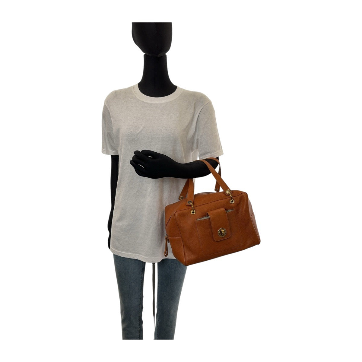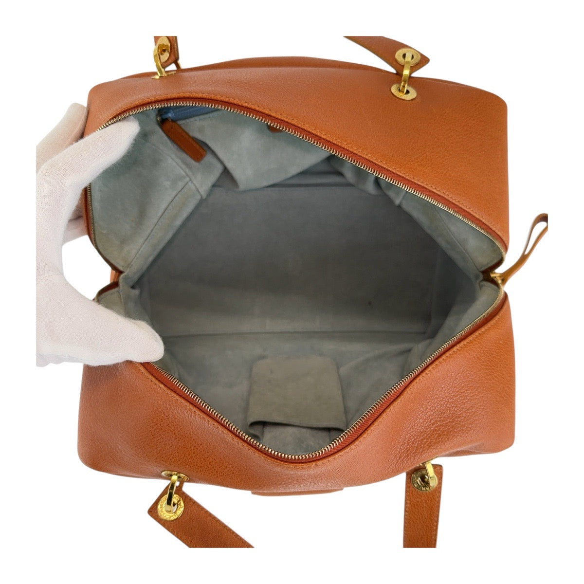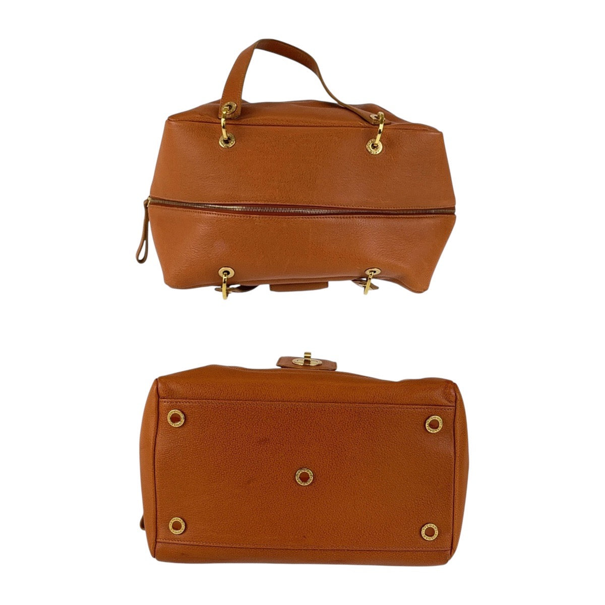 18026 BVLGARI ブルガリ ブルガリブルガリ ターンロック ブラウン ゴールド金具 レザー ハンドバッグ ボストンバッグ レディース ABP40