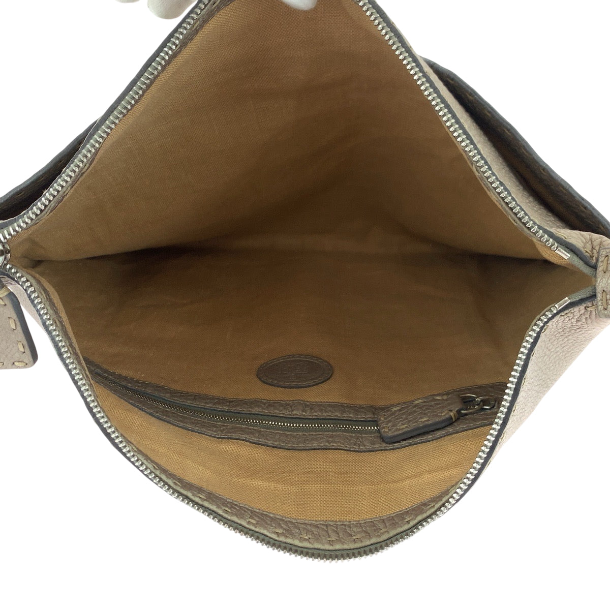 18048 FENDI フェンディ セレリア ベージュ シルバー金具 レザー 2390-8BT093 ショルダーバッグ 斜め掛け レディース AB38