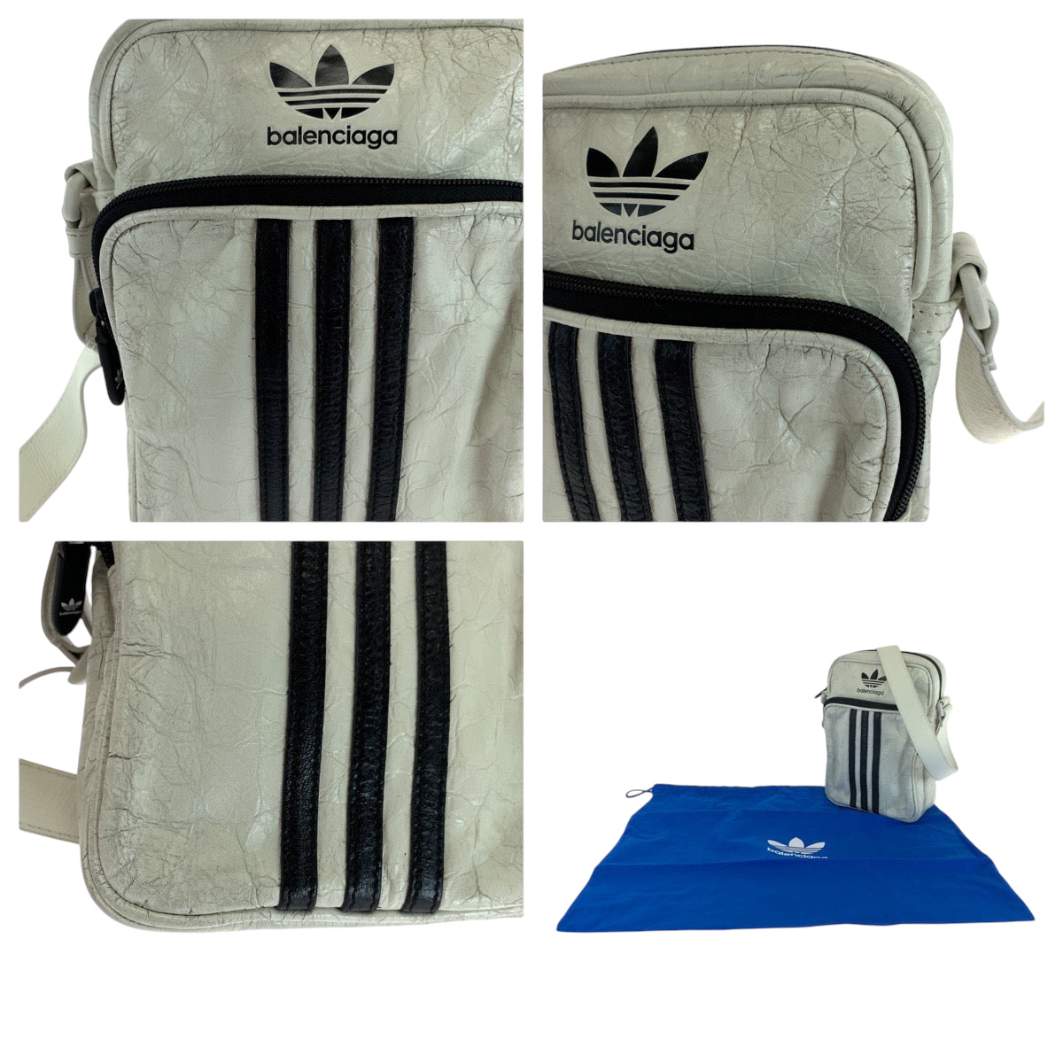 18055 BALENCIAGA バレンシアガ アディダスコラボ スリーストライプ 男女兼用 ホワイト ブラック ホワイト金具 レザー 721850 ショルダーバッグ ポシェット メンズ A75