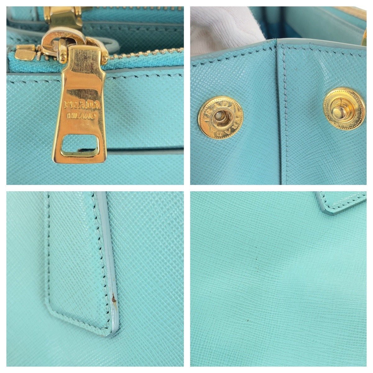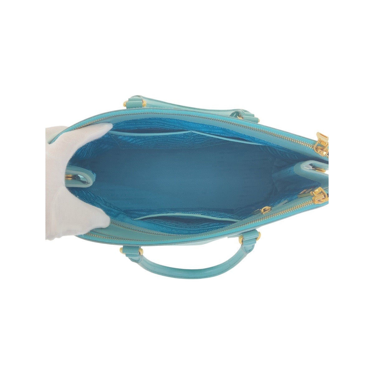 18069 PRADA プラダ サフィアーノ 三角ロゴプレート ガレリア グリーン ミントグリーン ゴールド金具 レザー トートバッグ ハンドバッグ レディース ABP70