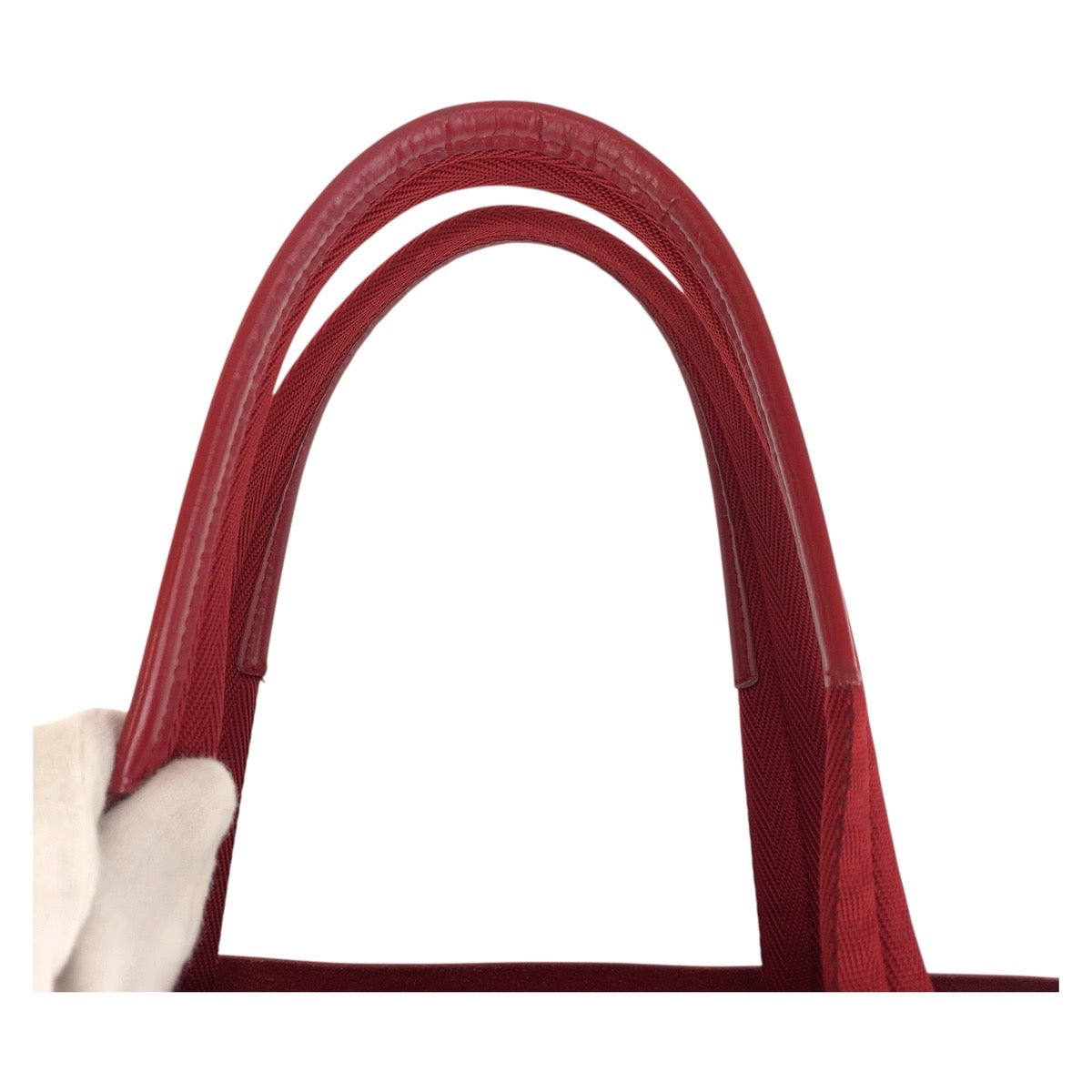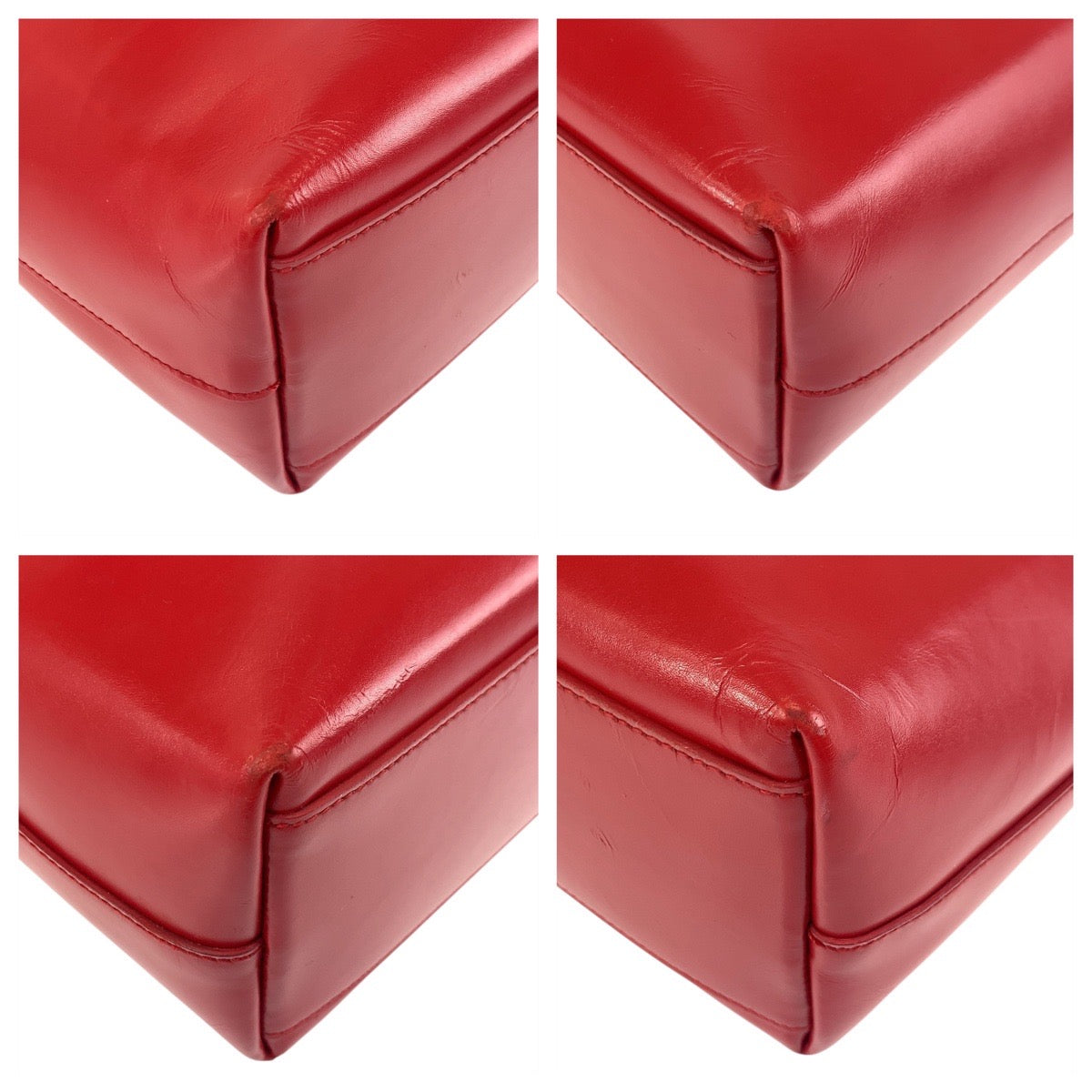 18144 PRADA プラダ ロゴ型抜き レッド レザー / スウェード トートバッグ ショルダーバッグ レディース ABP40